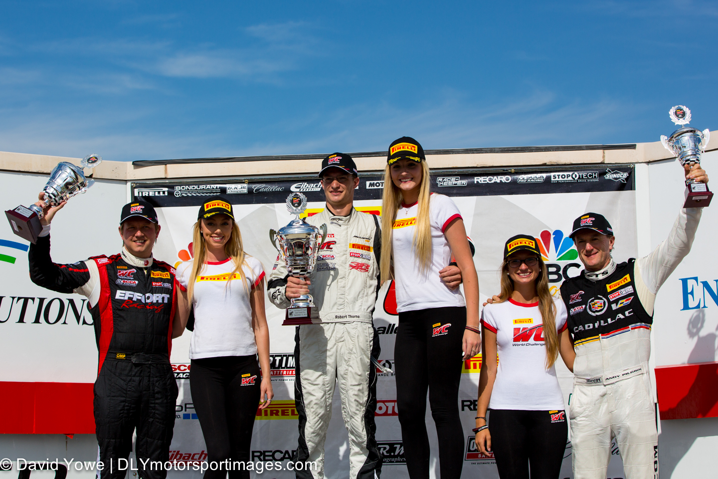 The last race of the 2014 Pirelli World Challenge (PWC) season was held mid-afternoon under clear weather conditions at Miller Motorsports Park. Following the end of Round 16, Johnny O’Connell took the GT class championship, with the GT-A class going to Michael Mills, and GTS class to Lawson Aschenbach.  The GT class manufactures championship went to Cadillac, and Kia took the GTS class. Hope you like the photos.