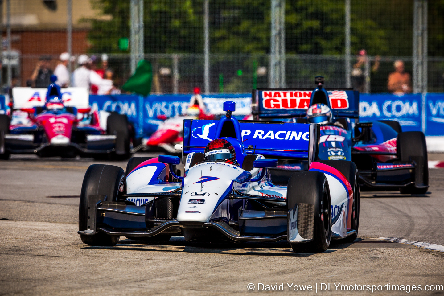 At speed on the front straight with Carlos Huertas in the #18 Dale Coyne Racing (Canon 5D Mark III, Canon 70-200mm f/2.8L IS II, 98mm, f/11, 1/80, ISO 100)