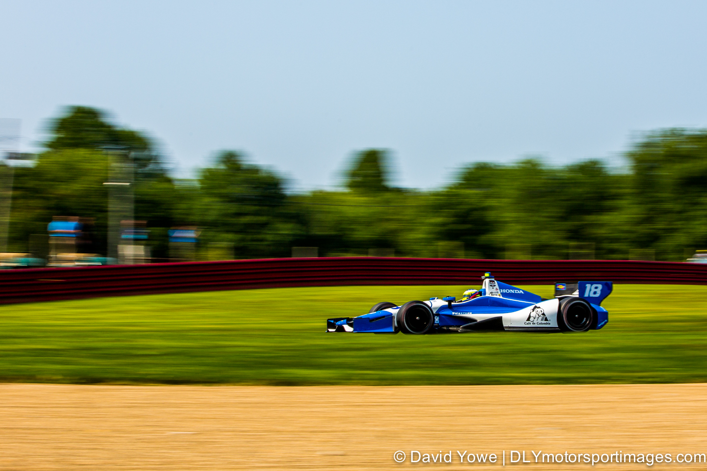 At speed with Carlos Huertas in the #18 Dale Coyne Racing (Canon 5D Mark III, Canon 70-200mm f/2.8L IS II, 70mm, f/16, 1/80, ISO 100)