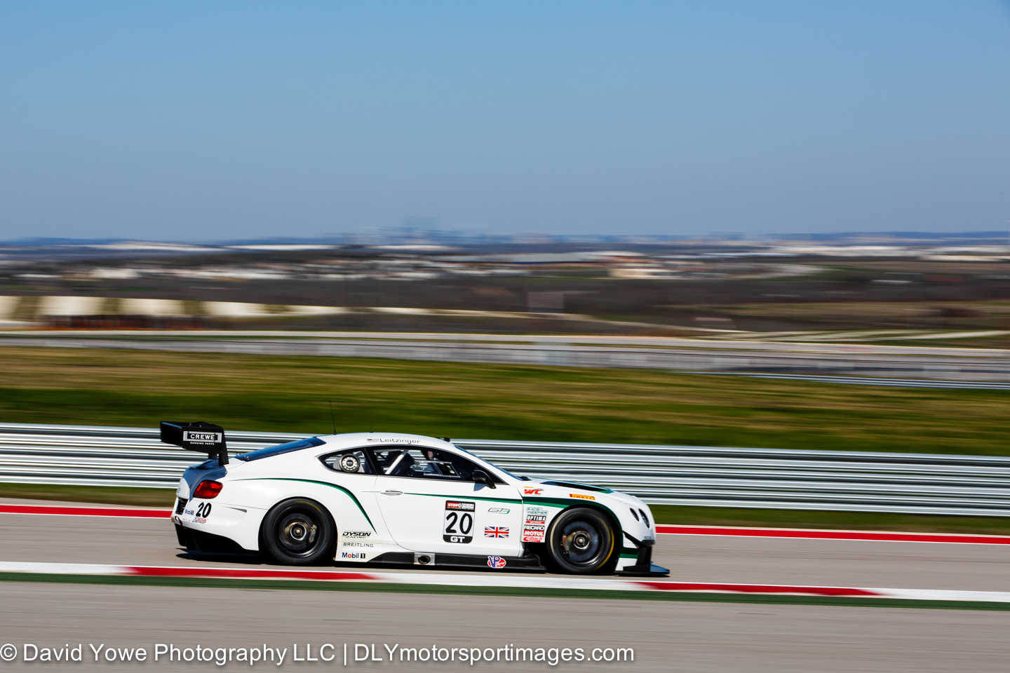 Walking down the hill a little to your right, can get you in a good position for shots of the cars “speeding across the Austin skyline”. First up is Butch Leitzinger in the #20 Bentley Team Dyson Racing Bentley Continental GT3.