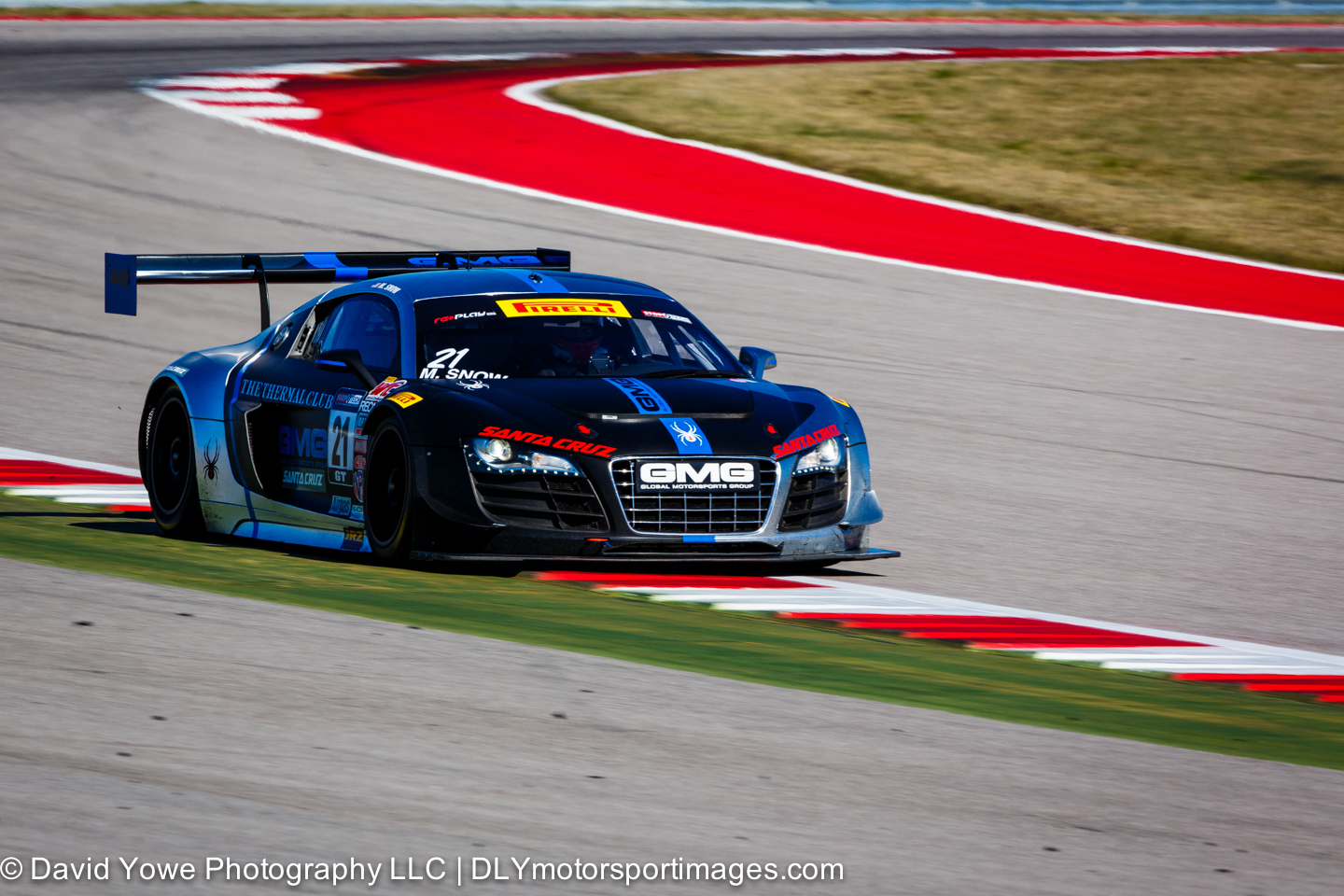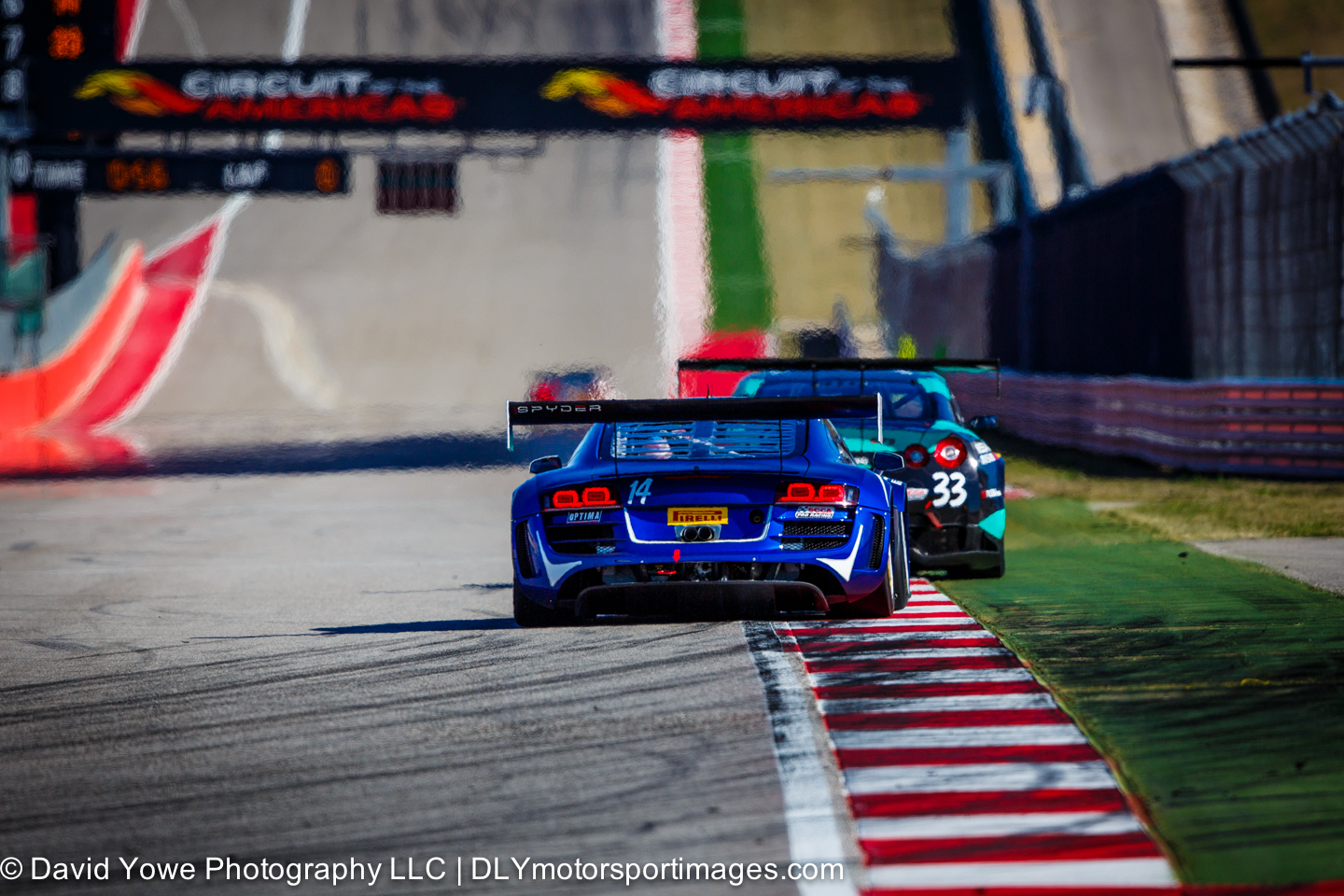 Speeding down the front straight with James Sofronas in the #14 Global Motorsports Group Audi R8 LMS Ultra