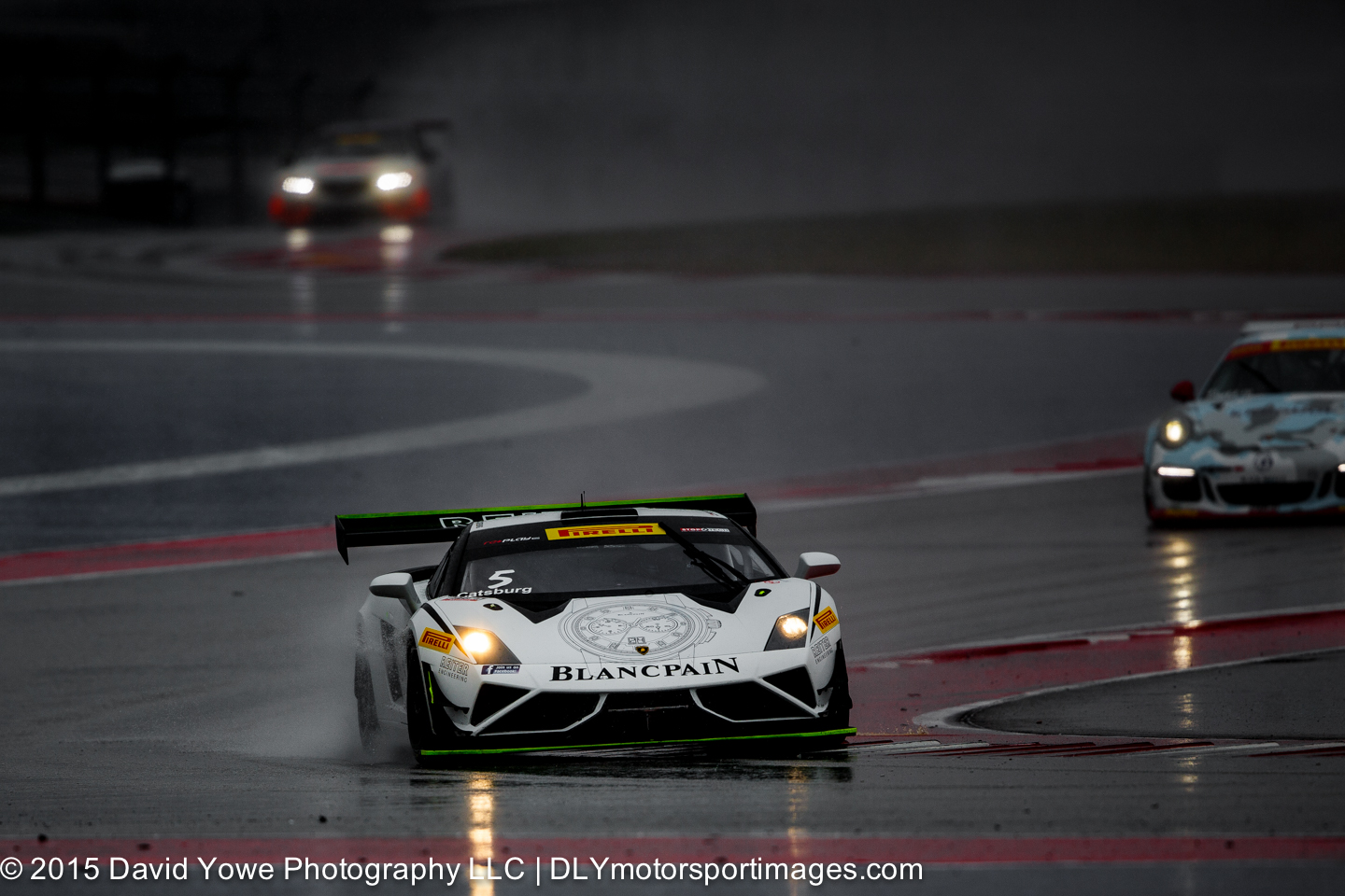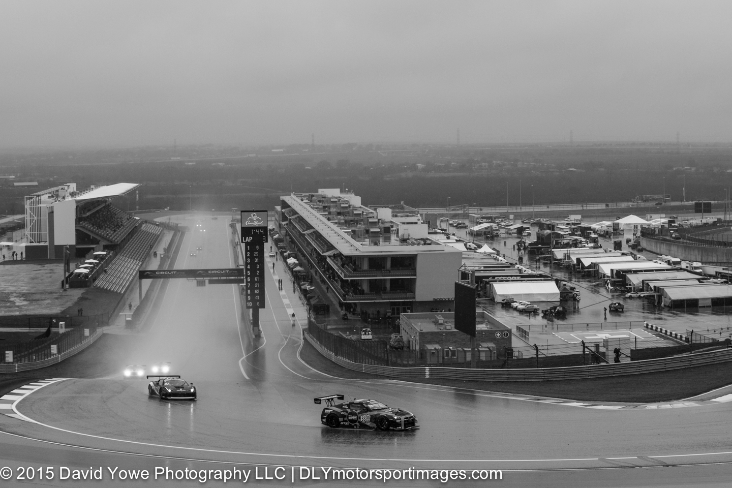 From a photographers perspective, I really enjoy shooting in the rain, since you have the opportunity to capture some dramatic moments with lights reflecting off the track, streams of water flowing from the rear of cars etc. Here’s a “train of GT cars cutting through the darkness”, led by Andy Pilgrim in the #8 Cadillac Racing Cadillac ATS-VR GT3 from the pit exit.