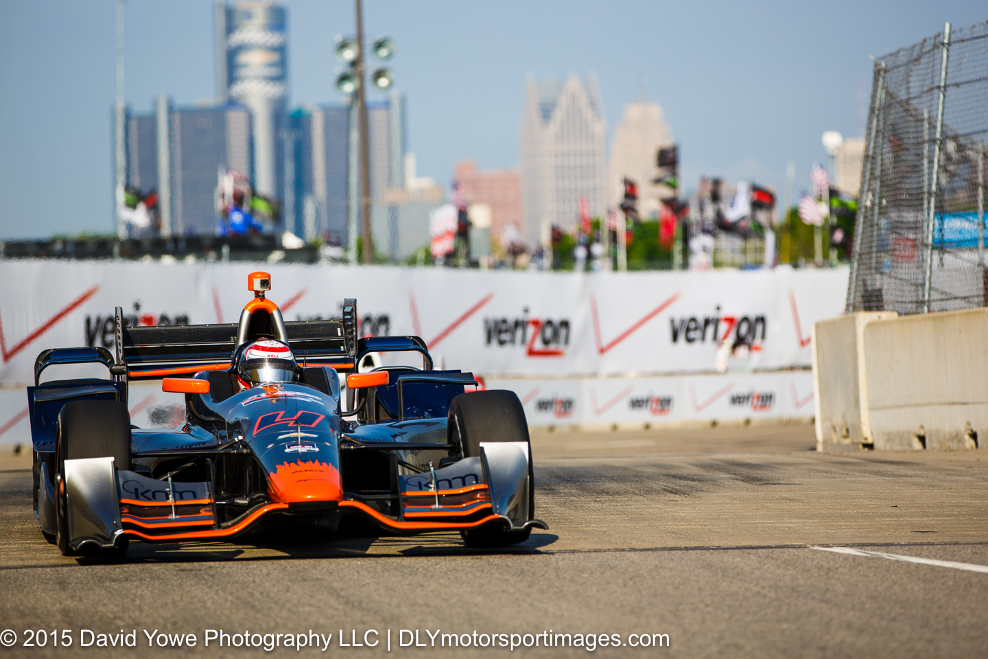Saturday morning practice for the IndyCar Chevrolet Dual in Detroit Race 1 was held under sunny blue skies. These weather conditions would be in contrast to the weather conditions that were experienced later in the day. Hope you like the photos.