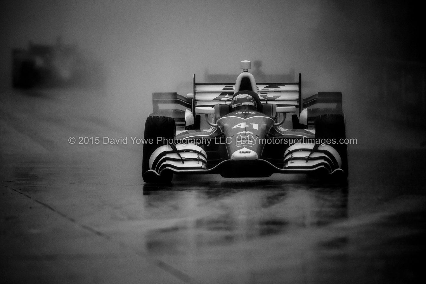 Later in the race the rain started to come down. “Rooster-tail” with second place finisher Marco Andretti in the #27 Andretti Autosport Honda.