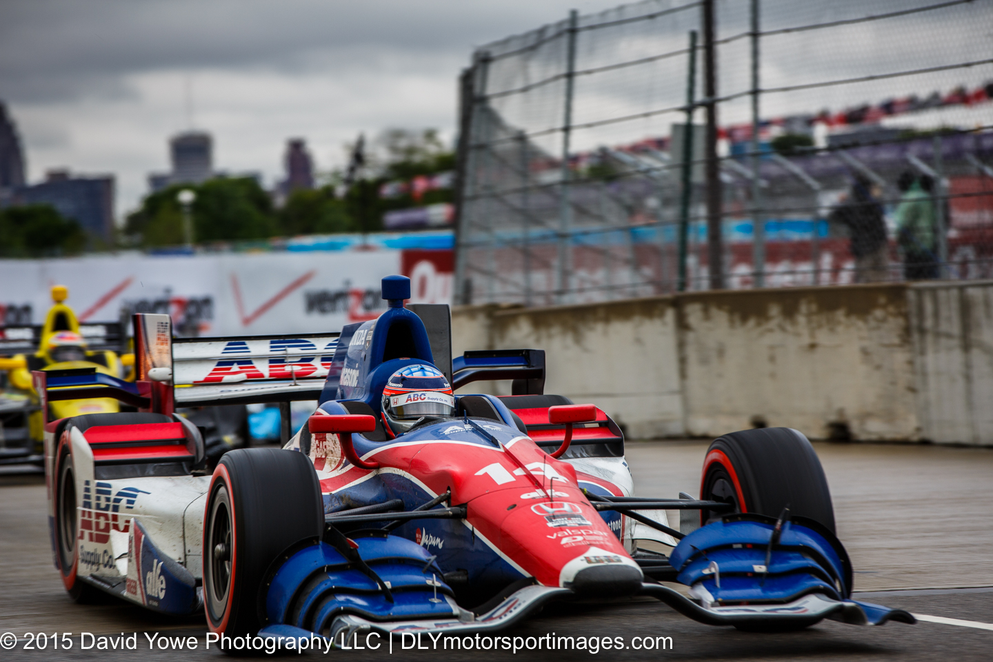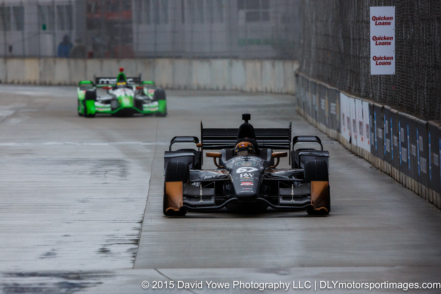 The IndyCar Dual in Detroit Race 2 was held Sunday afternoon under overcast skies on a wet track. After 68 laps, Sebastien Bourdais won the race in the #11 KVSH Racing Chevrolet. Second was Takuma Sato in the #14 A.J. Foyt Enterprises Honda and Graham Rahal in the #15 Rahal Letterman Lanigan Racing Honda was third. Hope you like the photos.