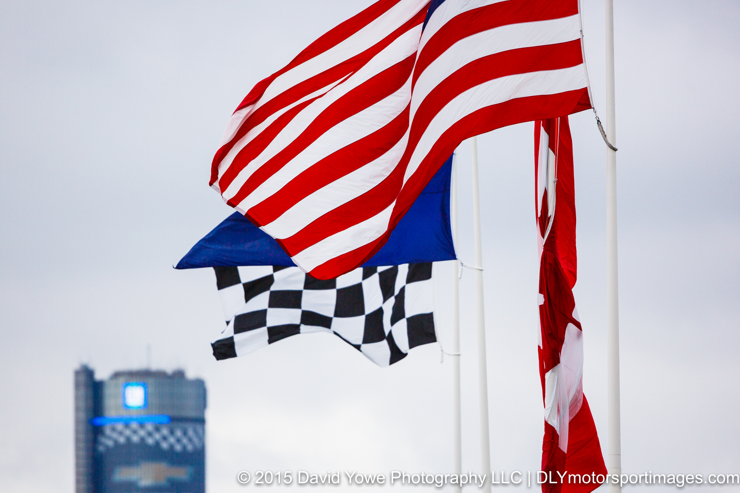 The USA and IndyCar flags were flying proudly over Grandstand 1.