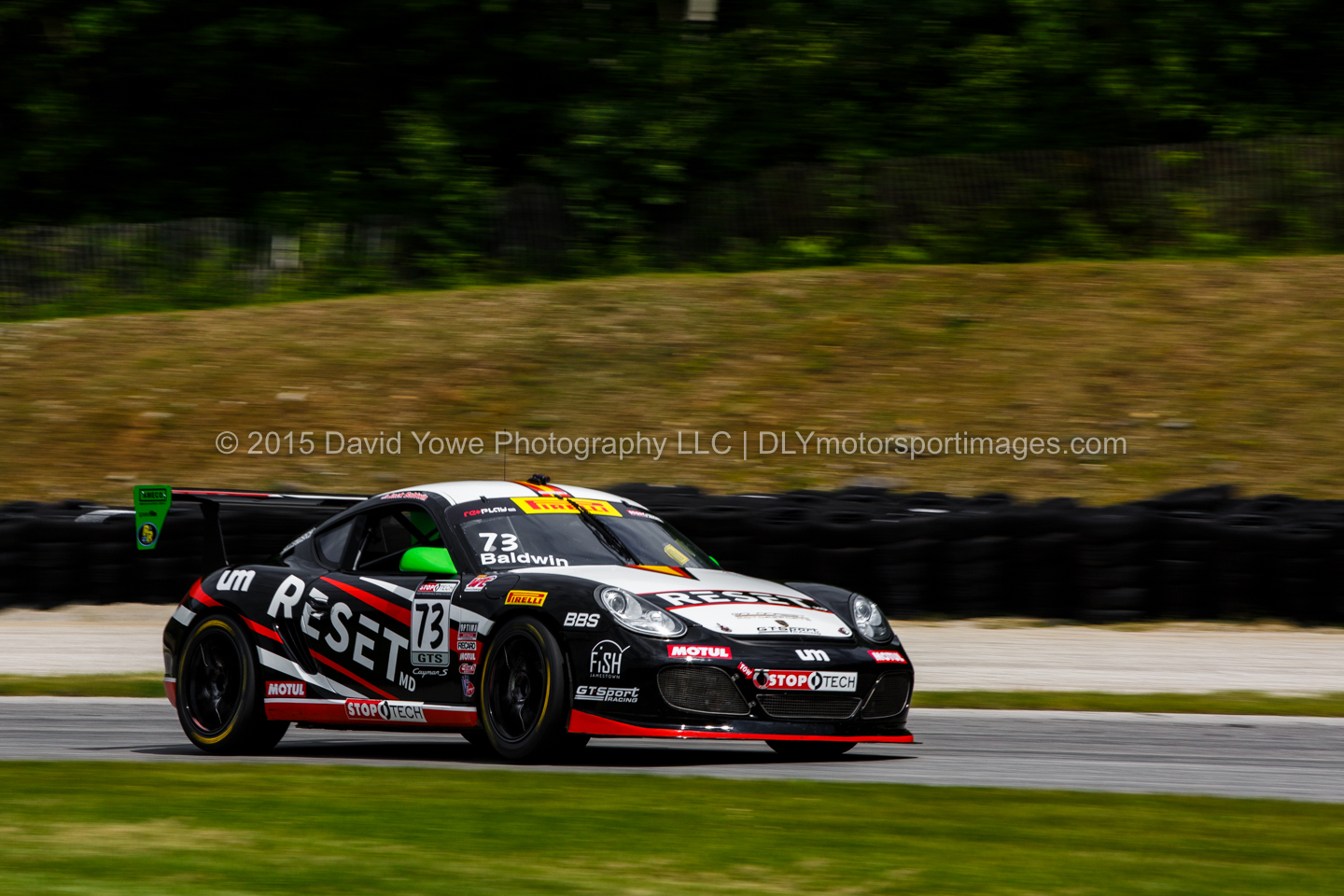 The Pirelli World Challenge (PWC) GTS class testing and practice were held on Thursday and Friday (June 25 and 26). After Practice 2, Mark Wilkins in the #38 Kinetic Motorsports/Kia Racing Kia Optima topped the charts with a fastest lap of 2:17.831 at 105.729 mph. Second fastest was Jack Baldwin in the #73 GTSport Racing Porsche Cayman S, then Ben Clucas in the #36 Kinetic Motorsports / Kia Racing Kia Optima. Hope you like the photos.