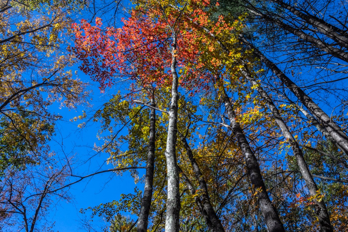 Took another look around the river bank before walking across the bridge. The morning light coming through the fall foliage was beautiful and their were photo opportunities wherever you looked, including up into the canopy of the trees.
