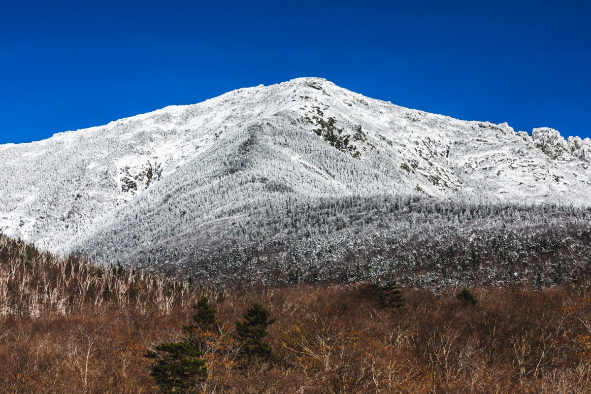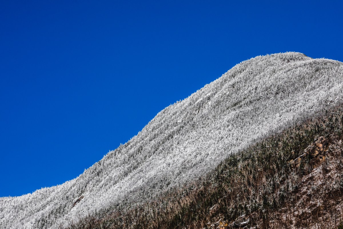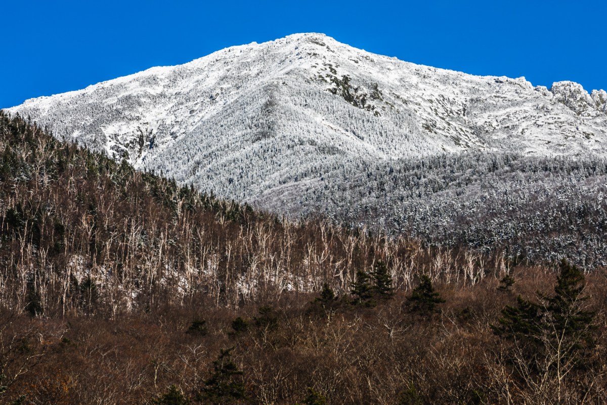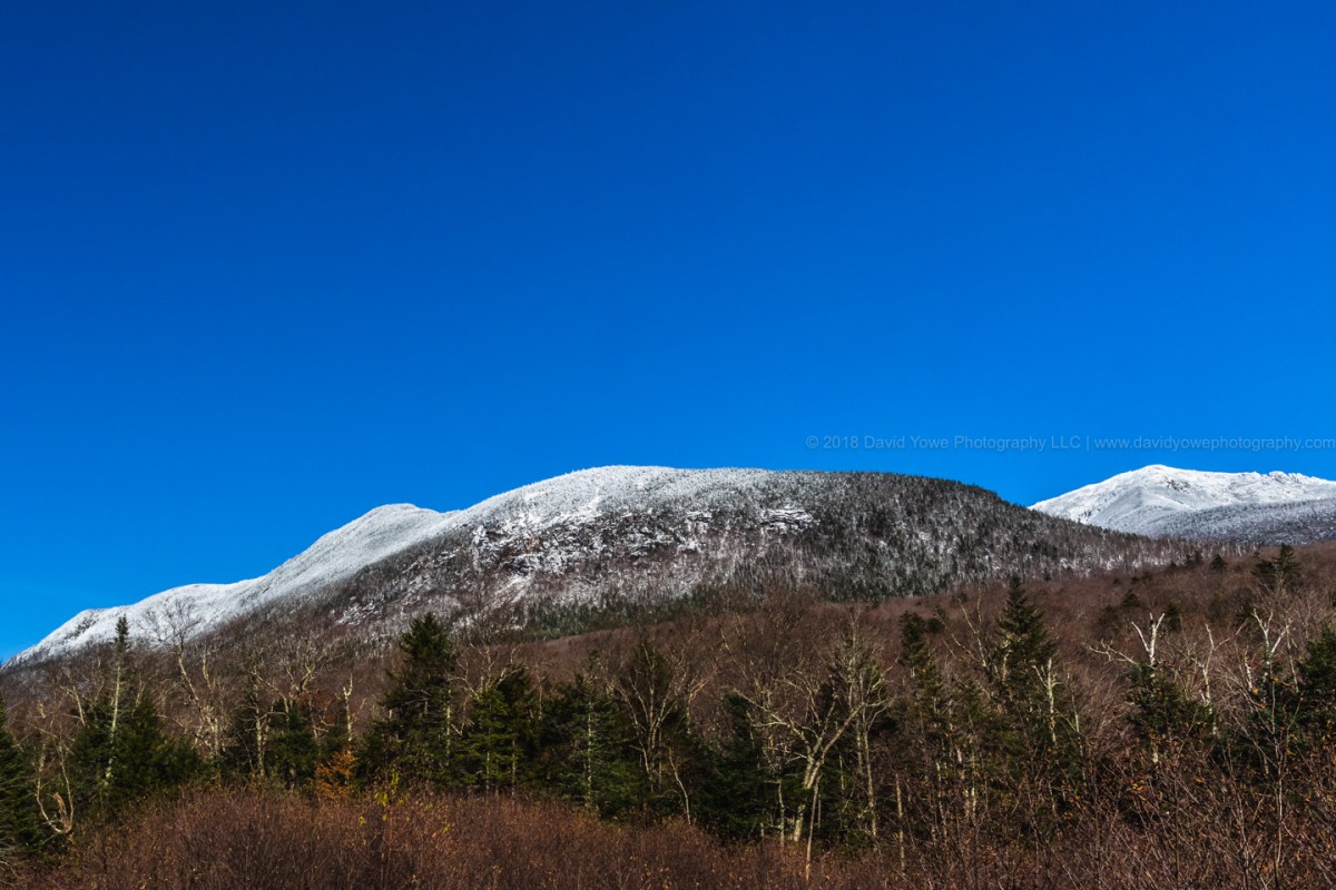 Headed back to the car park, then up to the open area near the main road in front of the Lafayette Place Campground. From this location you get a beautiful view of Mount Lincoln. This mountain is 5,089 feet high and is one New Hampshire’s “4000 footers”. Really liked the contrast between the brown trees in the foreground and the snow-covered alpine trees covering the mountain.