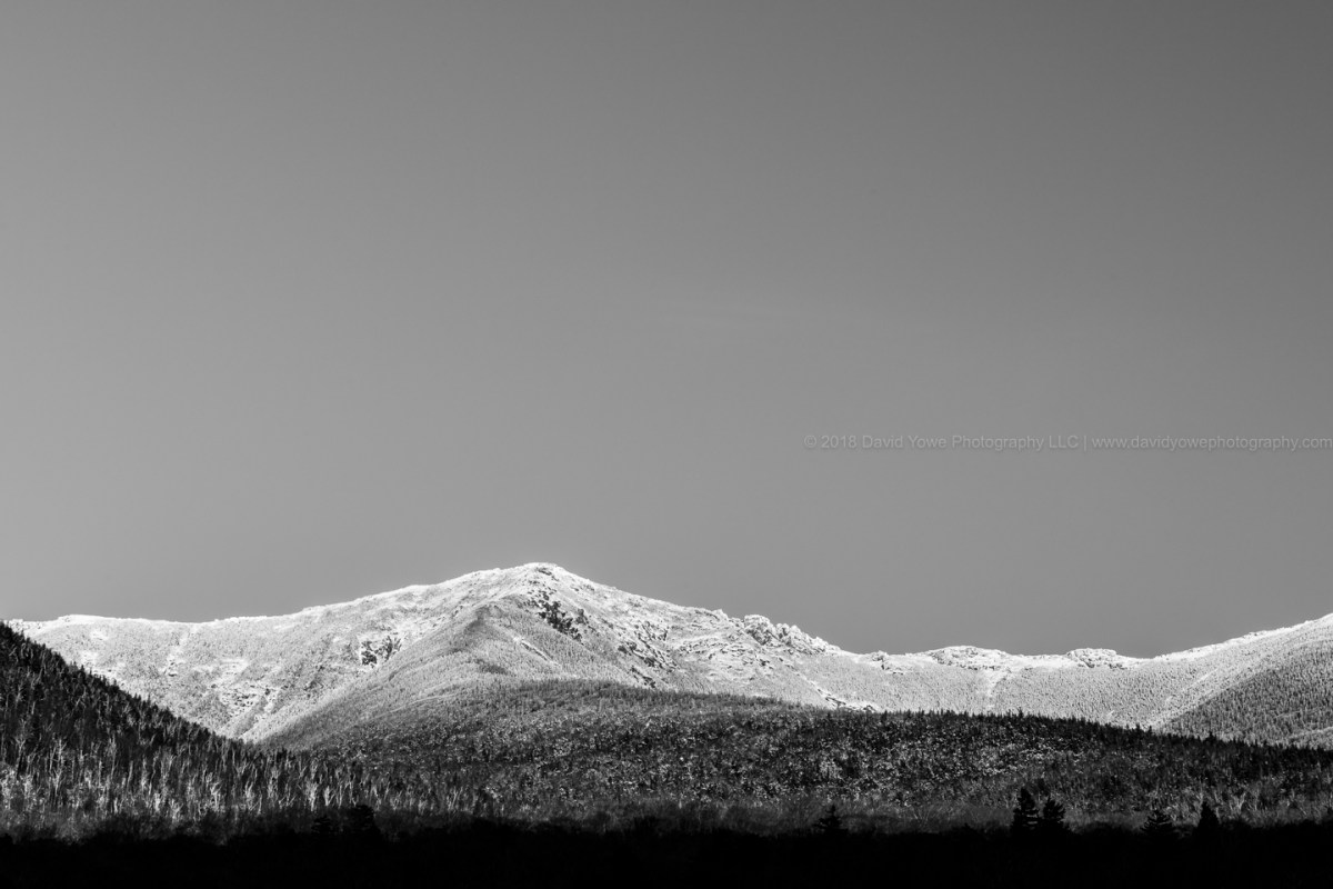 Walked across a bridge that takes you over the Pemigewasset River and scouted for photography locations. After a while decided to turn around and headed back to the bridge. By now the sun was getting lower and casting beautiful light over the snow-caped Franconia Range under a clear blue sky.