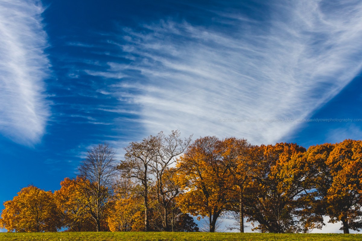At the top of the first drumlin there is an open grassed area lined with trees. Noticed a beautiful cloud formation overhead, so walked down the hill of the grassed area for a photo of the trees with the amazing cloud formation being blown by the wind across the frame.