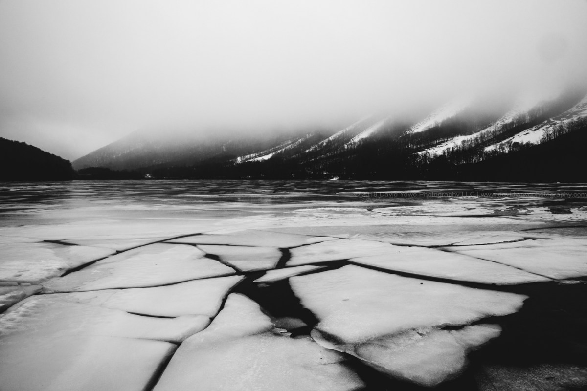 By the time I arrived at Echo Lake, the clouds got lower and it started to rain. So I quickly took some photographs of the ice covered lake.