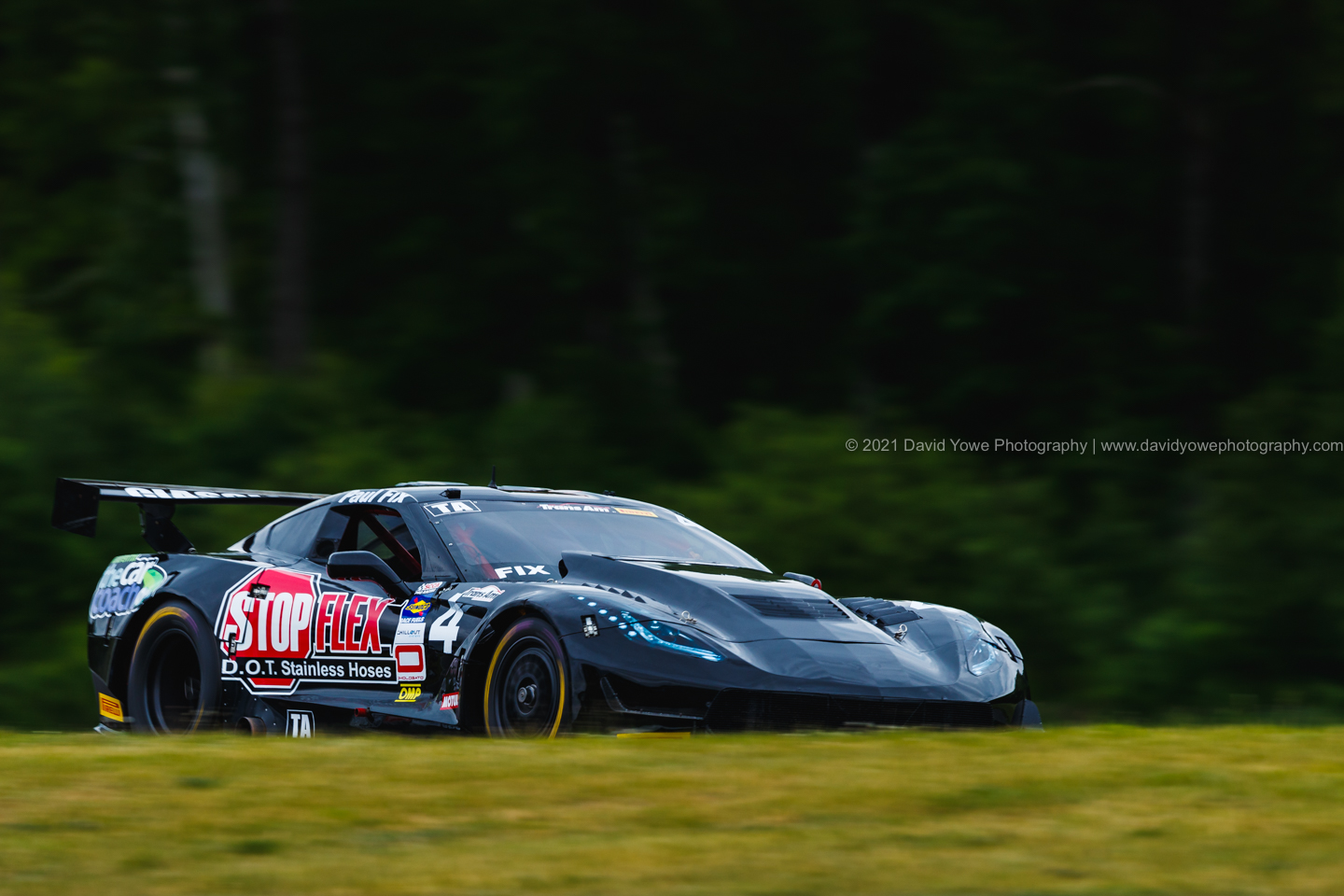 For the 2.20 pm TA/XGT/SGT/GT practice session, went to the paddock area on the inside of the Lefthander. This is one of my favorite locations to photograph from, since you can get shots of the cars, which appear to be “racing on the grass”. The #4 StopFlex.com/CarCoachReports Chevrolet Corvette.