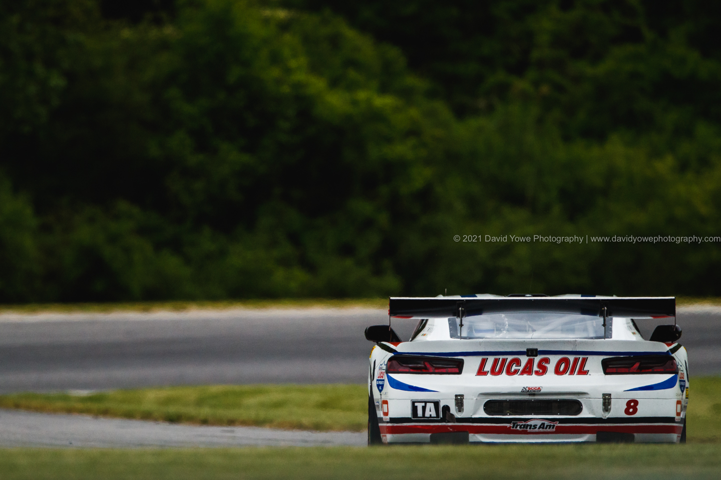 You can turn to your right and get rear shots of the cars as they exit the Lefthander into the Righthander. Tomy Drissi in the #8 Lucas Oil Chevrolet Camaro.
