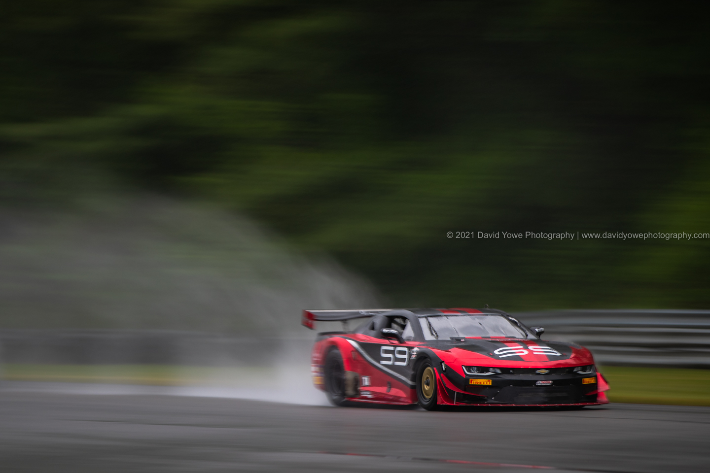 Rain was expected for the TA qualifying session at 5.40 pm, so thought about where to go so could get shots of the cars with water from the rain spraying from the rear of them. Decided to go to the top of The Uphill, then walk along the straight to West Bend. Some shots of #59 The Peter Gregg Foundation Chevrolet Camaro.