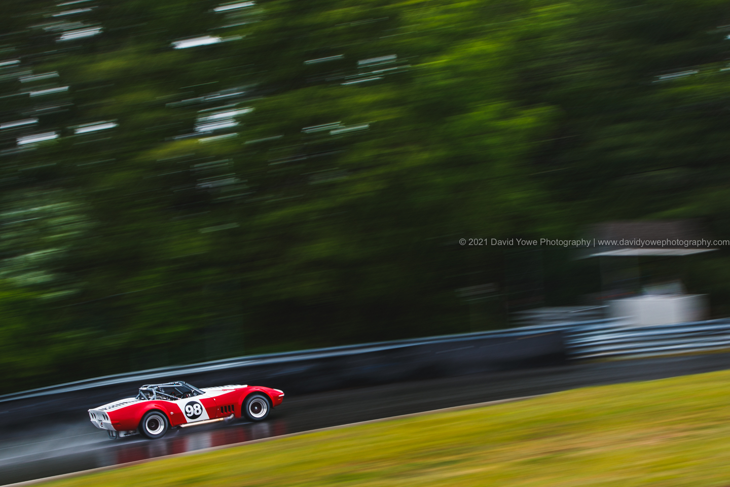 Here’s a shot of the beautiful red and white #98 Corvette near the top of the Uphill.