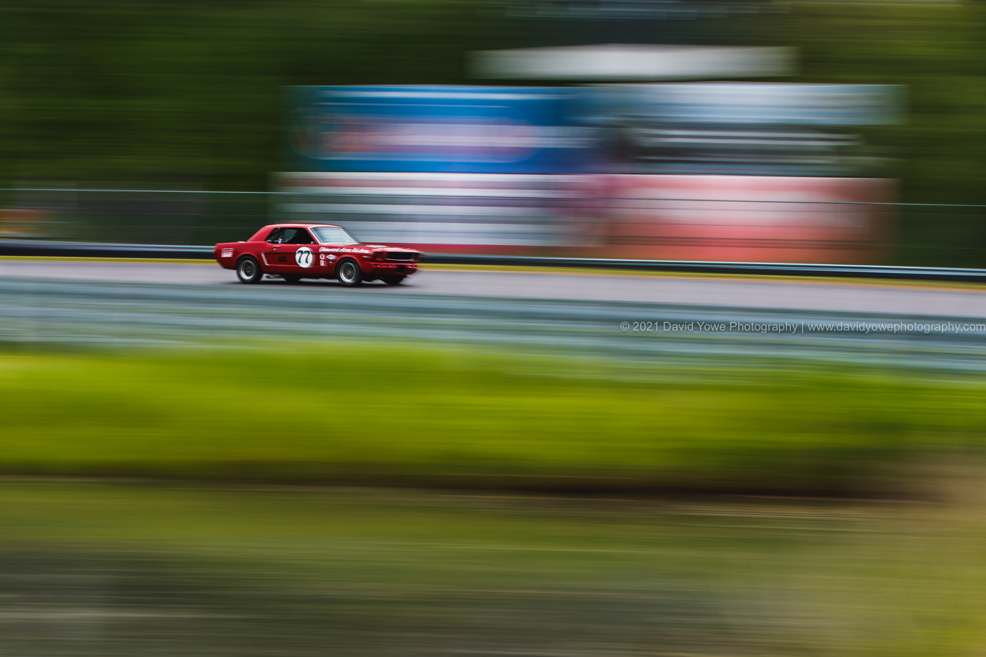 For the afternoon SVRA sessions headed down to the paddock and across the track to the outside spectator area for shots of the cars racing down Sam Posey straight. The brilliant metallic paint work in this vintage #77 Ford Mustang really caught my eye.