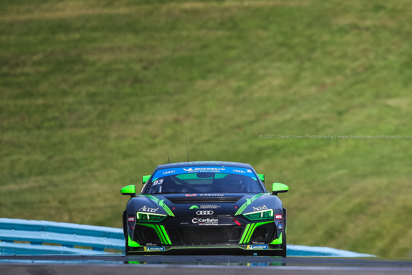 For the 8.00 am practice one session for the Michelin Pilot Challenge, started photographing from the right side of the marshals stand for shots of the cars as they hit the apex of Turn 9 at the top of the Boot. This is a great place to be with the morning light illuminating the front of the cars. The #83 FASTMD RACING Audi R8 GT4.