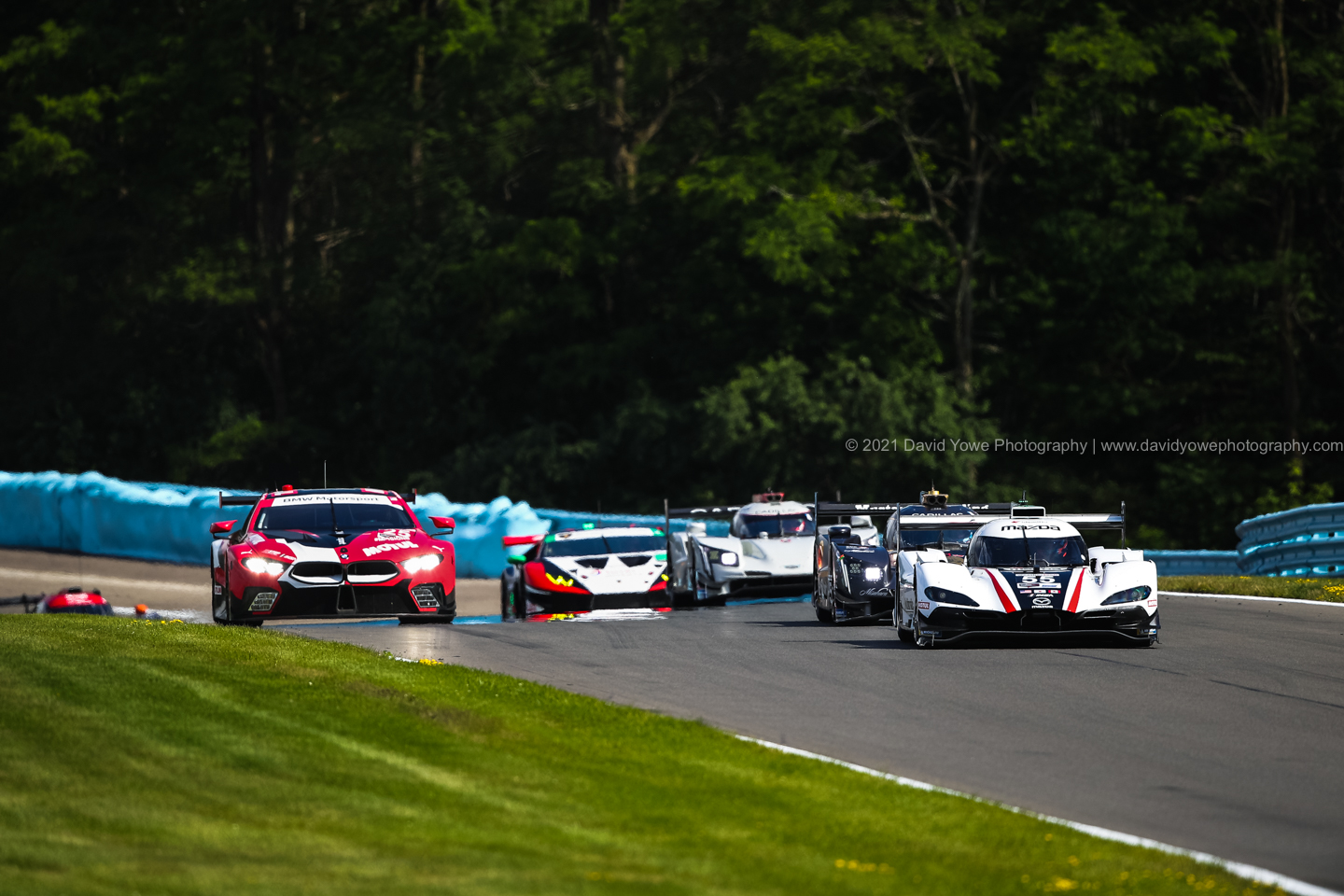 At 4.40 pm the WeatherTech Championship cars hit the track for practice one. For this session, went to the inside of the Chute that goes into the Boot. The #55 Mazda Motorsports Mazda DPi leading other prototypes and GTLM cars down the Chute.