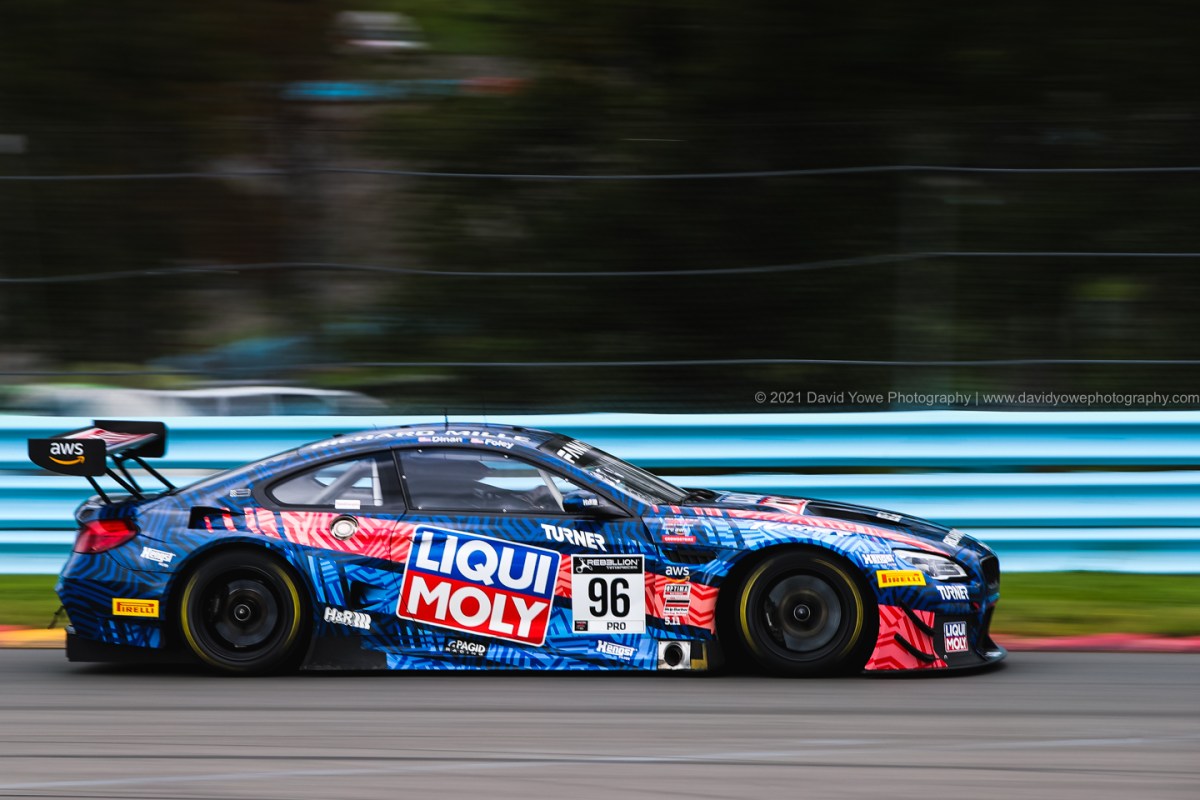 The blue livery of the #96 Turner Motorsport BMW F13 M6 GT3 matched the blue safety rails that lined the track.