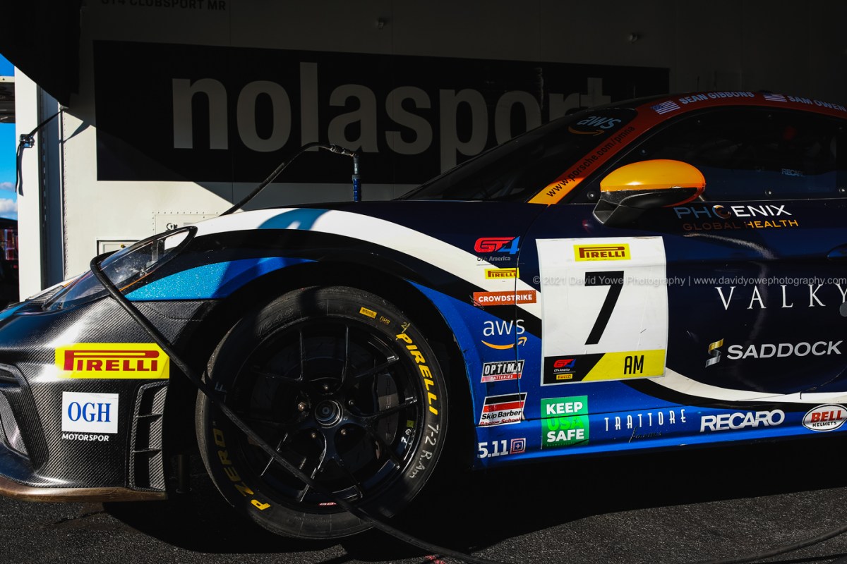 As I was walking down the hill, stopped for some head on shots of the cars. The #16 Capstone Motorsports Mercedes-AMG GT4 (top), #47 NOLASPORT Porsche 718 Cayman GT4 CLUBSPORT MR (middle) and #66 TRG – The Racers Group Porsche 718 Cayman GT4 CLUBSPORT MR (bottom). Thought the livery on the front of the #66 looked really cool.