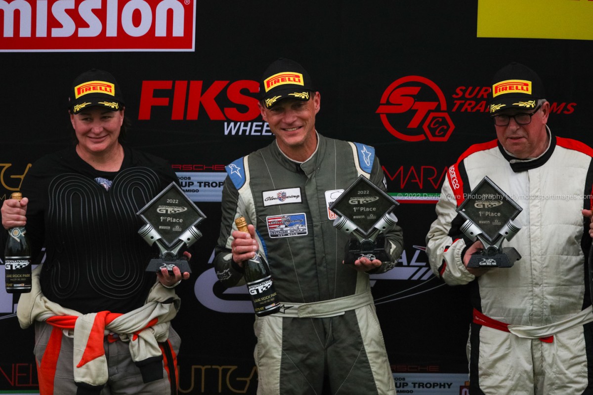 As the SVRA session continued, walked down the road, through the paddock, then to the Infield Spectator area for shots of the International GT race which started at 10.20 am on a wet track. After the race was finished, walked over to the podium for shots off the winners.