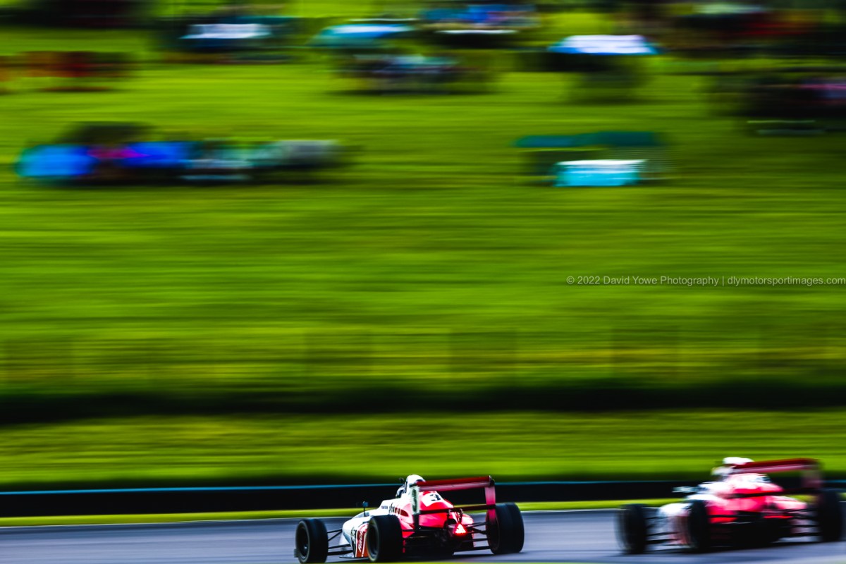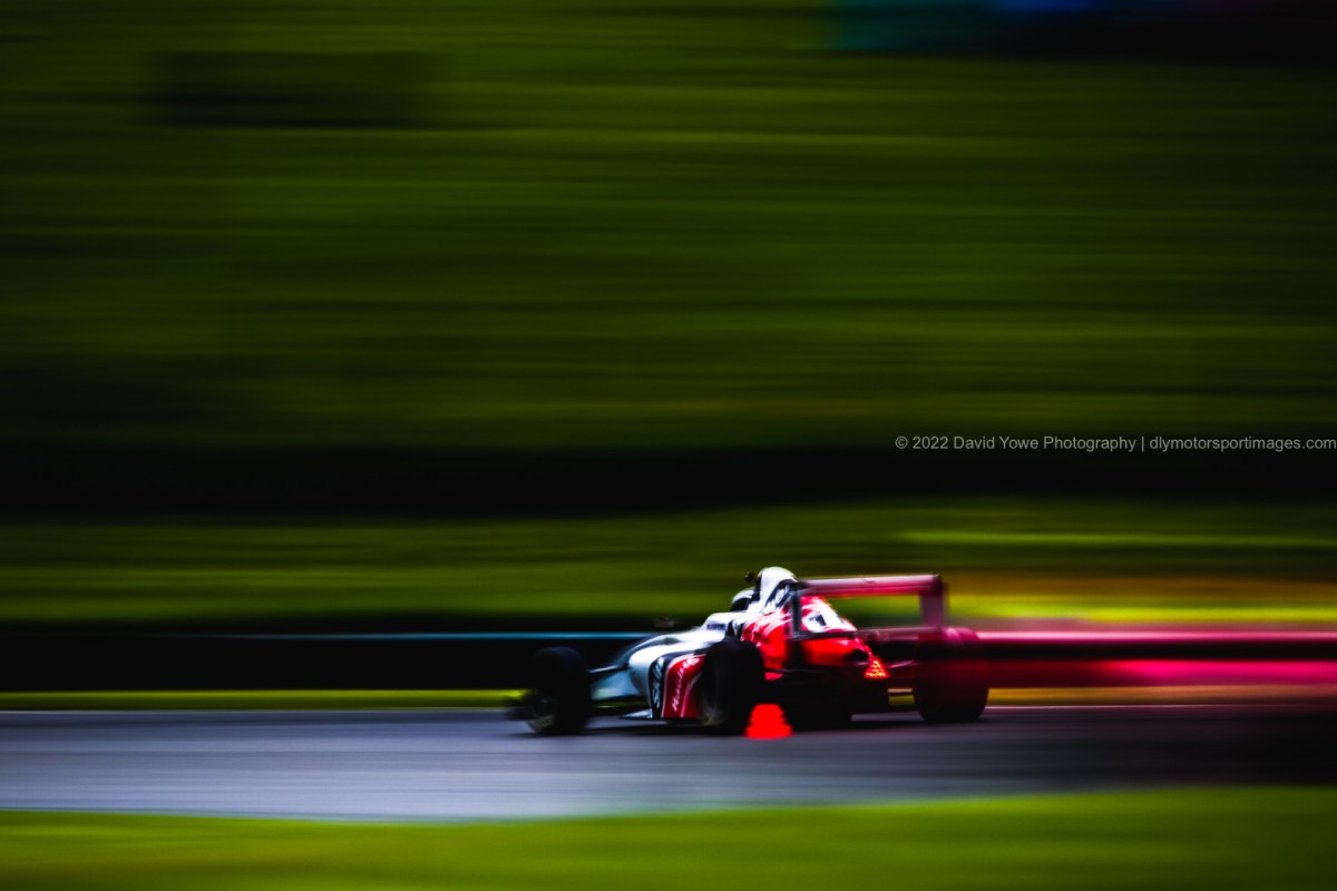 For the 11.25 am Skip Barber Race Series practice, walked along the outside of the Esses for inside panning shots of the F4 cars as they exited the Right-hander, since wanted to get shots of these cars with there red rear lights in the overcast conditions.