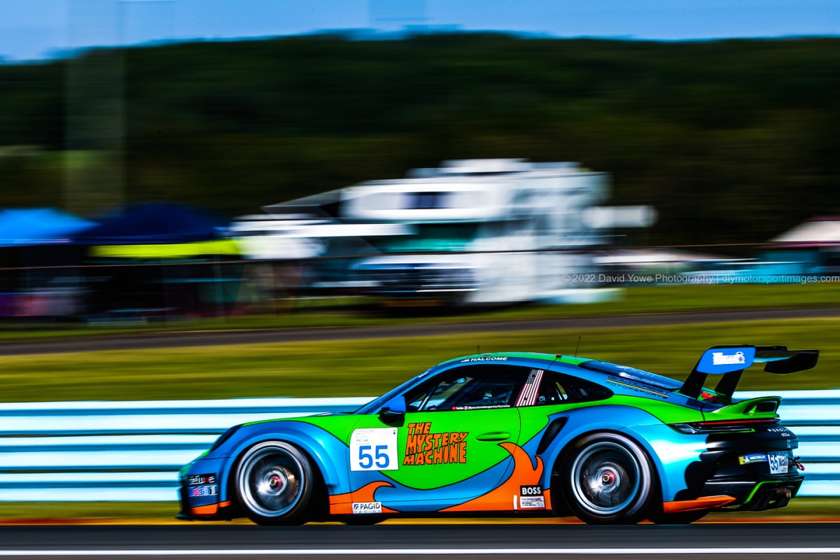 Over the Inner Loop hill with the #9 JDX Racing Porsche 992.