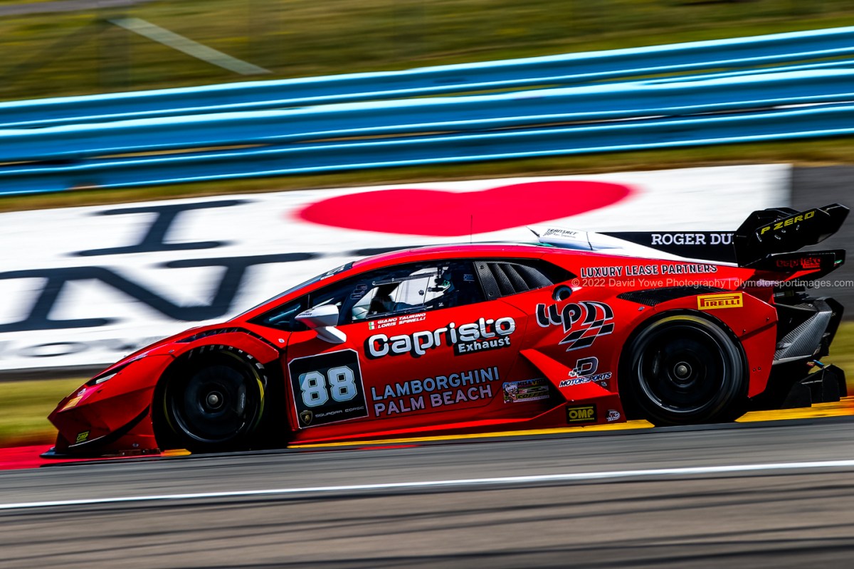 After capturing the race start and a couple of laps, walked up the front straight to a photo hole which overlooks the “I Love NY” sign painted on the side of the track. After a few attempts, managed to capture the #88 Taurino Racing by D Motorsports Lamborghini Huracan Super Trofeo Evo2 in front of this sign.