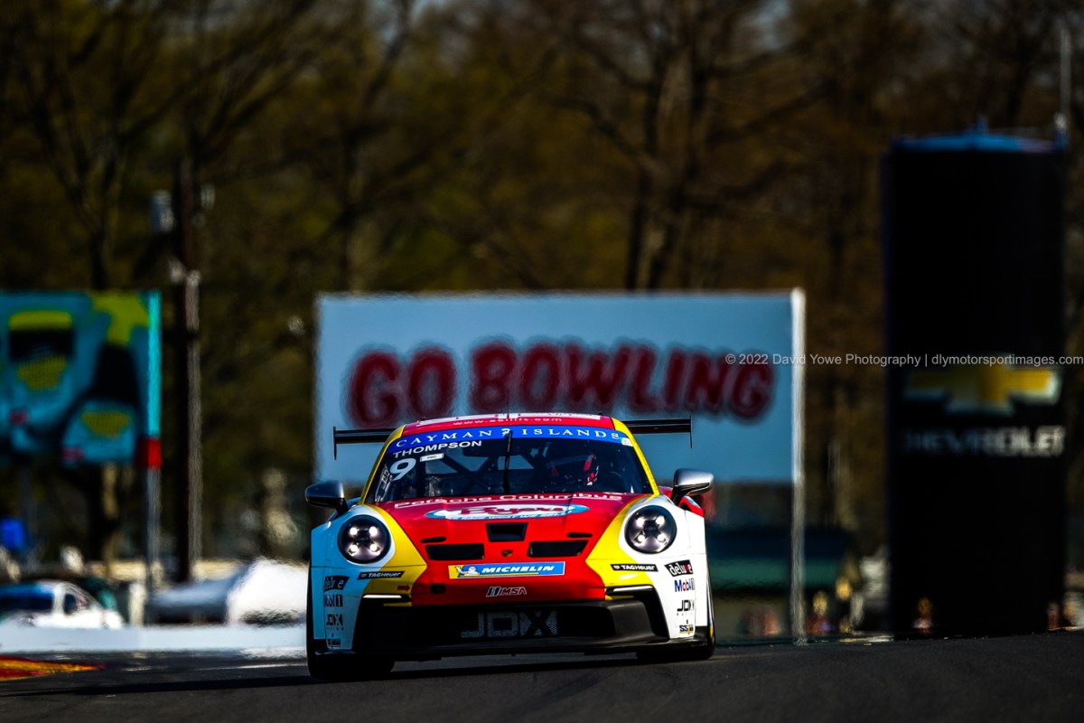 Over the Inner Loop hill with the #9 JDX Racing Porsche 992.