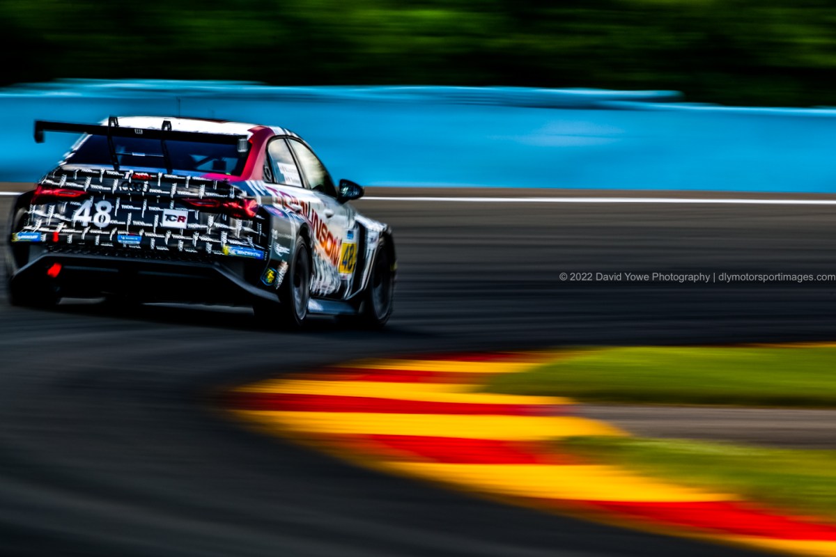 Slow shutter speed panning really makes the colors “pop” under overcast skies. The #48 TWOth Autosport Audi RS3 LMS TCR. After the session finished at 12.05 pm, headed back to the media center to download photos and grab some lunch.