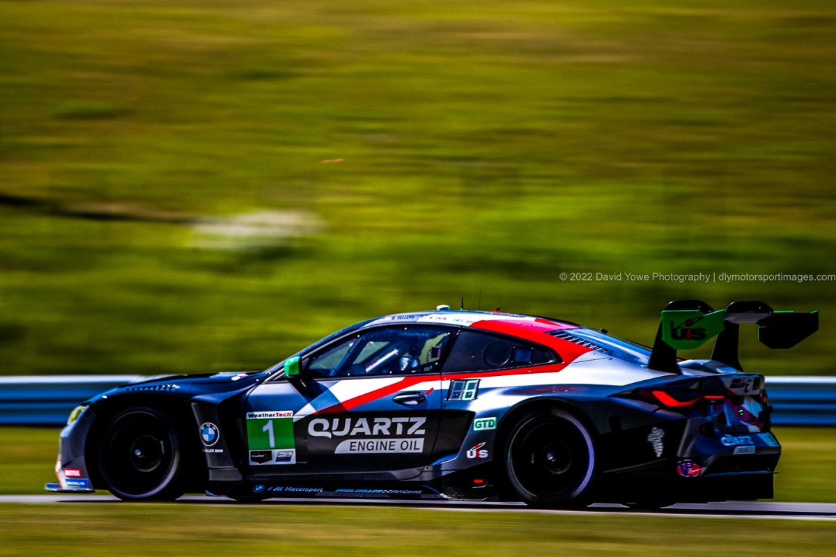 It wasn’t long until qualifying for the WeatherTech Championship started at 5.40 pm. At this time of day, the sun was getting lower, and illuminating the cars with beautiful light. Another shot of the The #1 Paul Miller Racing BMW M4 GT3 speeding out of the Left-hander and into the Right-hander.