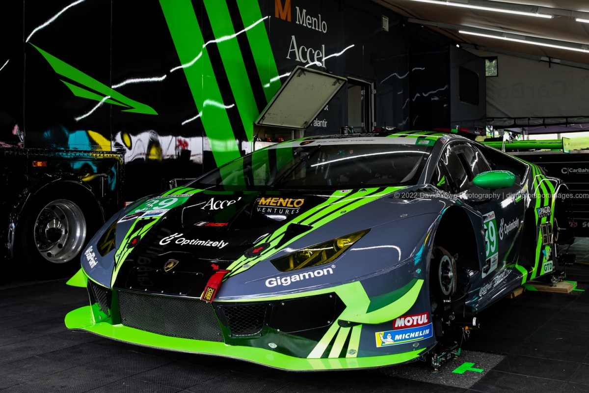 First stopped by the garage areas in Paddock A, to get some photos of the cars looking pristine under their workshop lights. The #9 Pfaff Motorsports Porsche 911 GT3R (top) and #39 CarBahn with Peregrine Racing Lamborghini Huracan GT3.