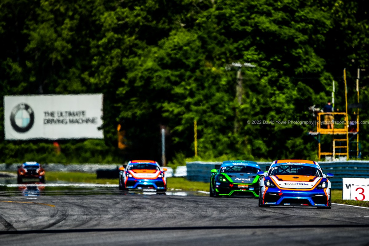 Since it was a beautiful sunny day, went over to the outside of Big Bend, for the first practice session of the Michelin Pilot Challenge at 10.05 am. This is a great place to start from, since you can get a variety of shots from the one location. First, took photos of the cars coming down the front straight, into Turn 1, then under the bridge. The #46 TeamTGM Porsche 718 GT4 RS CS (top) and #71 Rebel Rock Racing Chevrolet Camaro GT4.R (middle).