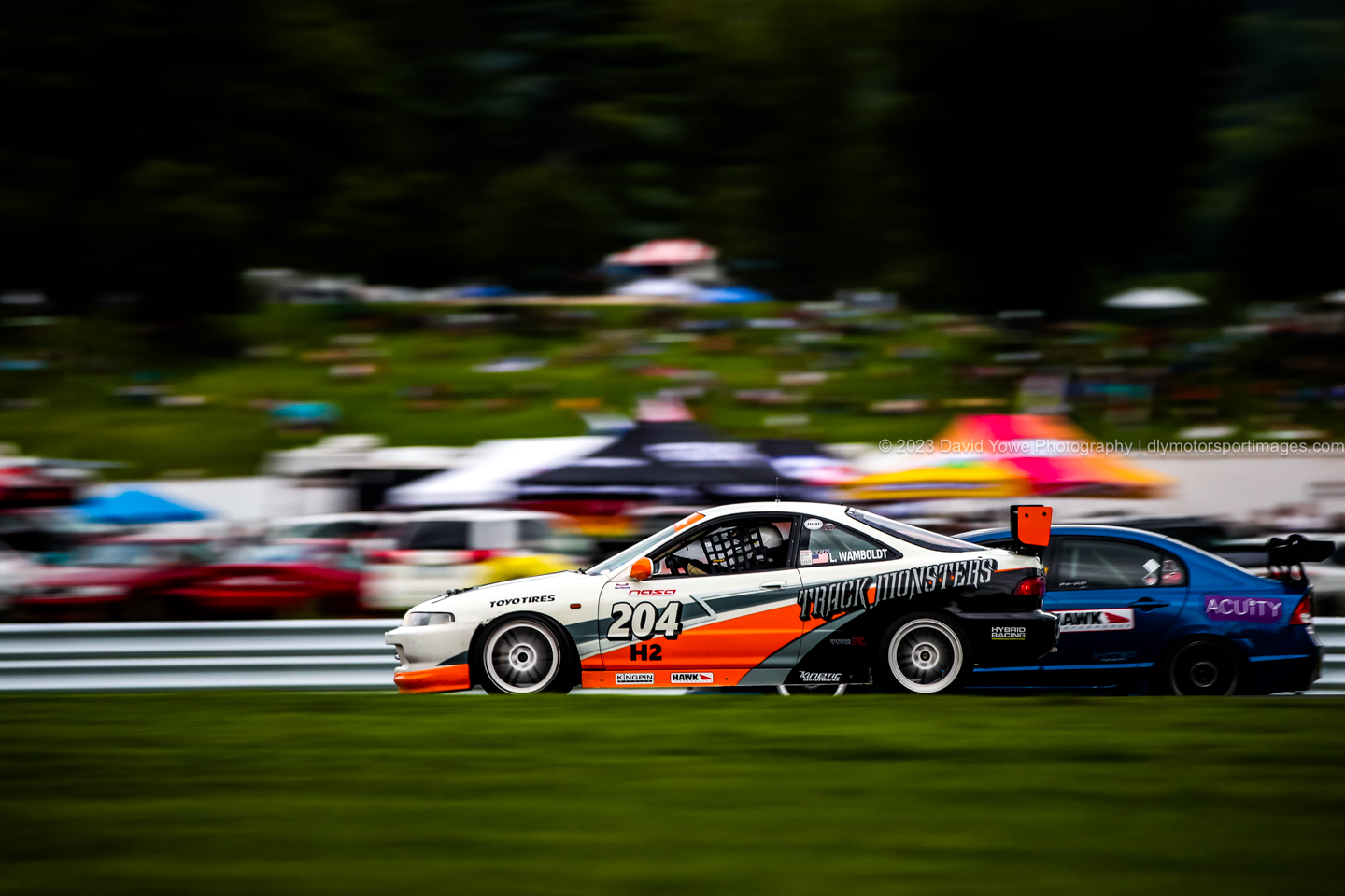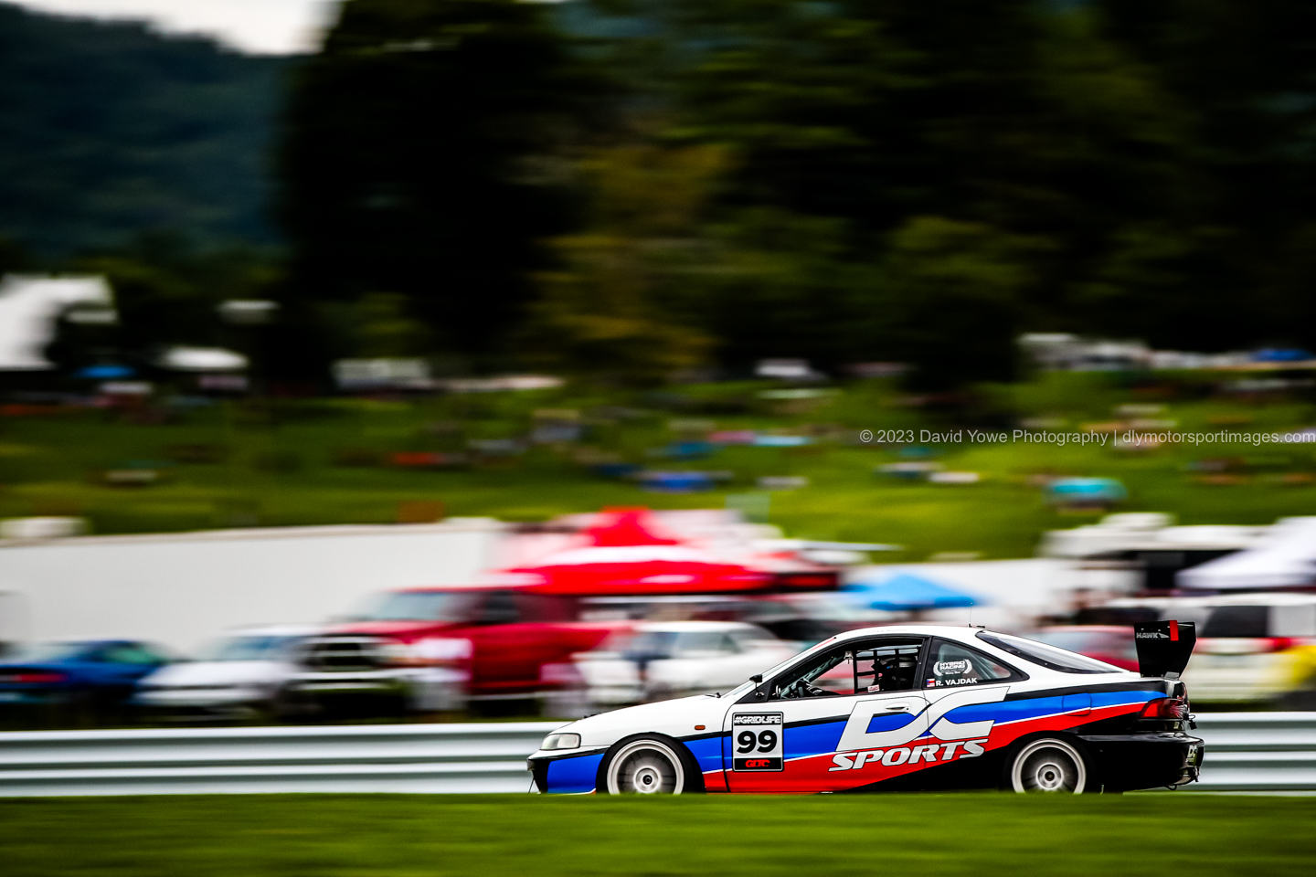 Some panning shots of the cars speeding through Big Bend with the A paddock in the background. The #204 Track Monsters (top) and the #99 DC Sports (bottom) Honda Integra’s.