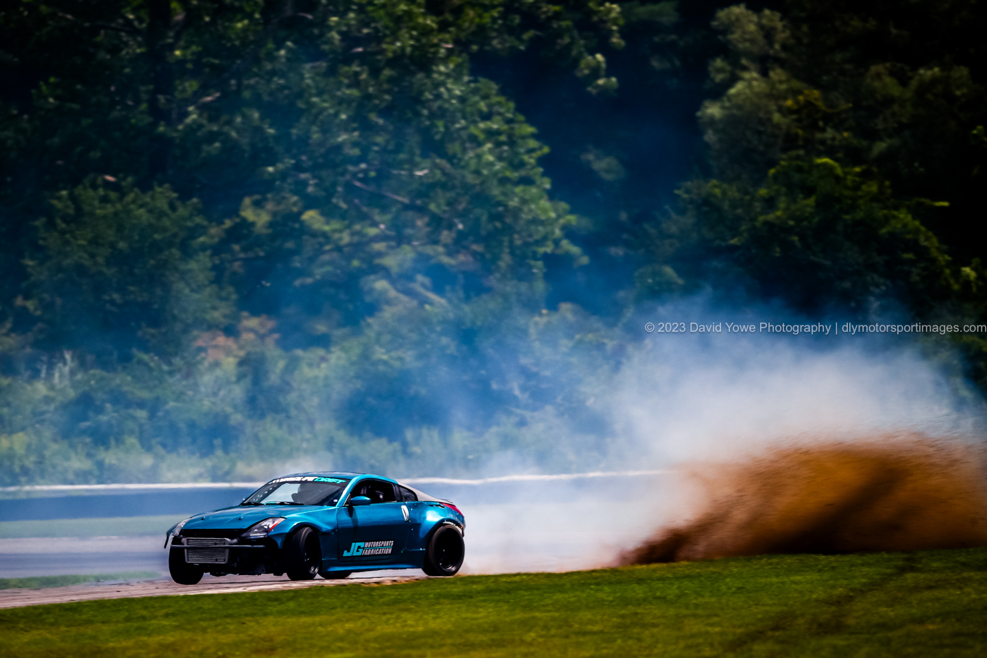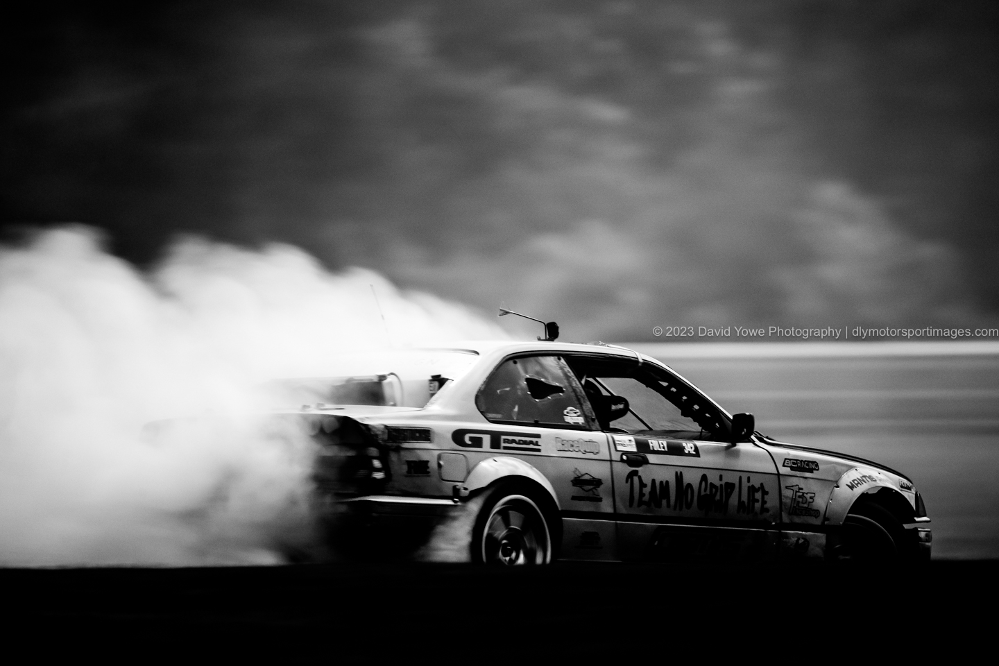 It’s amazing how many different photography opportunities appear in front of you as the smoke and cars speed by you with very unique shapes. Developed this photo in black and white to emphasize the white smoke trailing this Nissan Z.