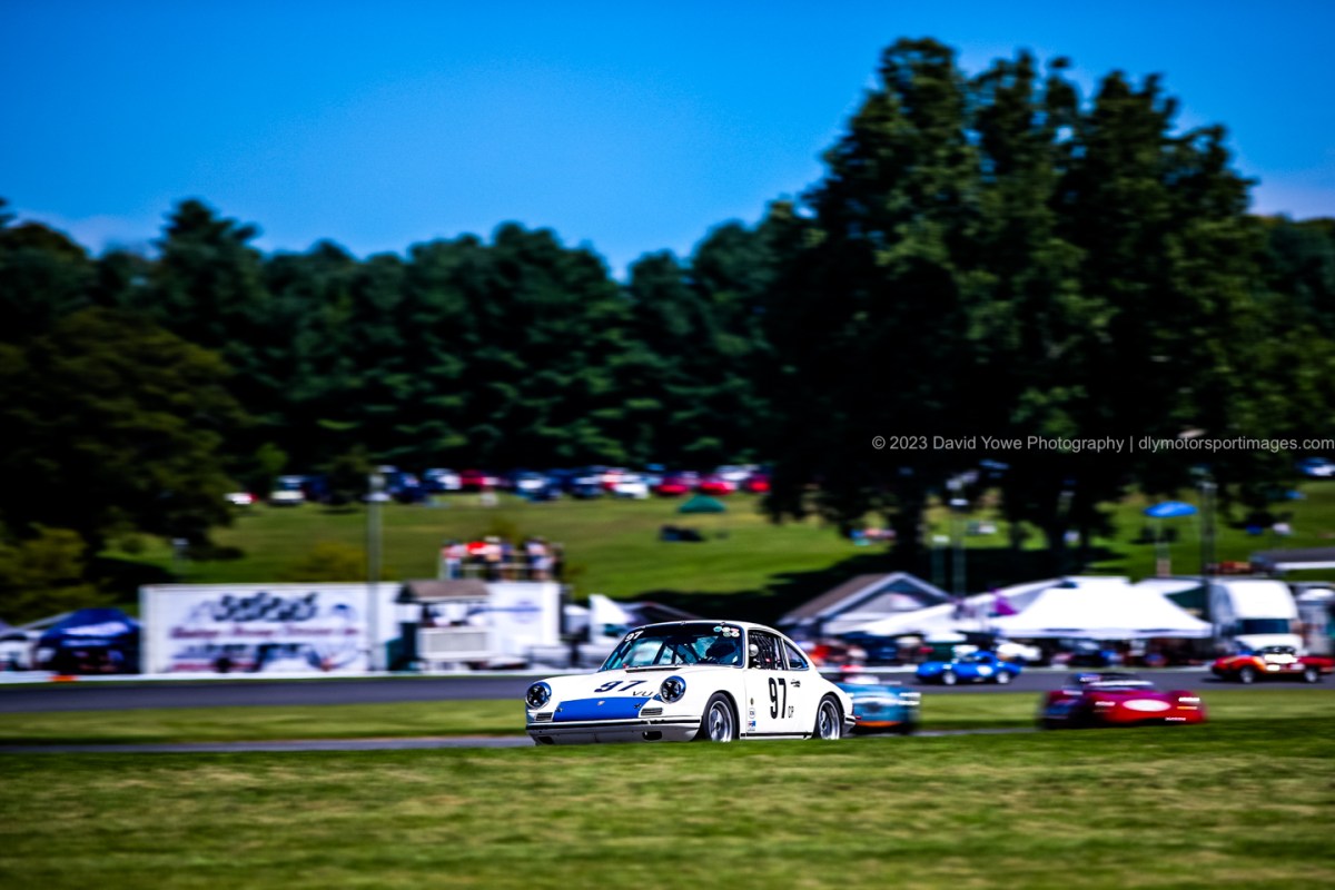 A 1968 Porsche 911 with the Inner Spectator Hill in the background.