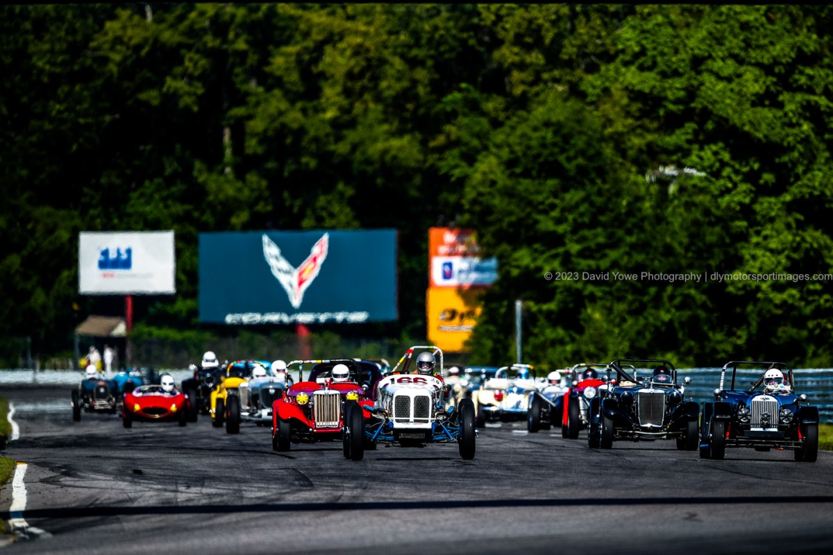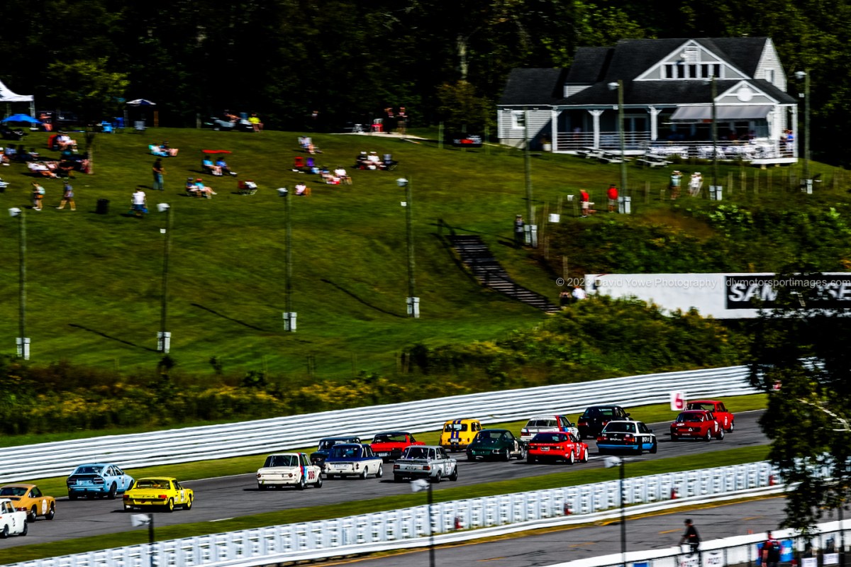 For the start of the Tin Tops / IMSA RS / Under 2.5 Liter Cars second race at 3.30 pm, wanted to get a shot of the whole field going down the Sam Posey Straight, so walked over to the top of the Downhill in the spectator area for a vantage point to take this shot.