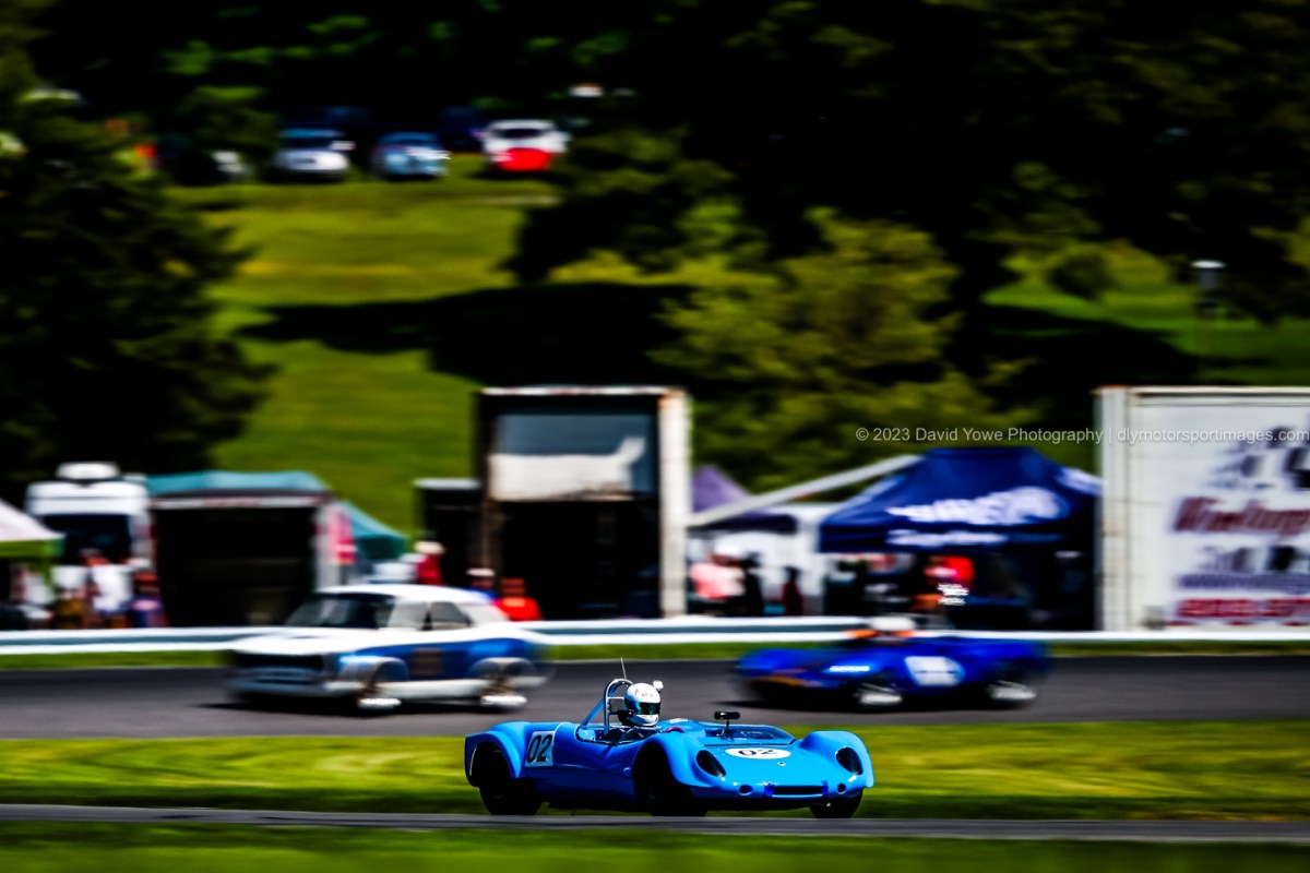 Walked along the straight between the Lefthander and Righthander for a different vantage point to capture the Mid-Century GT / Sportscars Under 2 Liter race at 11.50 am. Racing, with a 1958 Turner 950S and 1960 Turner.