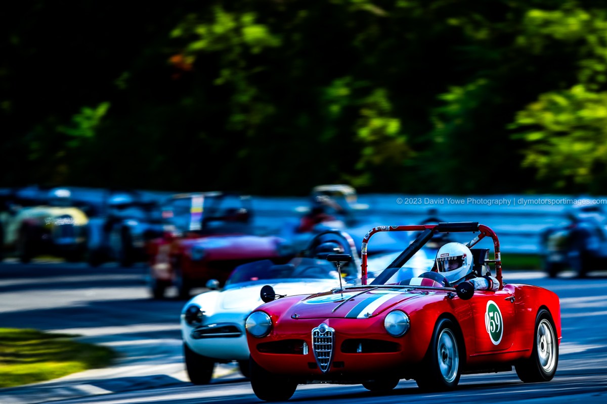 Then walked to the outside of West Bend for the Mid-Century GT / Sportscars Under 2 Liter second race at 3.55 pm. A 1959 Alfa Romeo Giulietta 101 Spider leading several cars into West Bend,