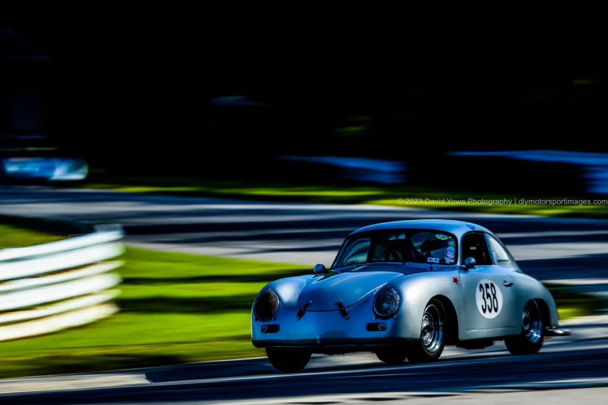 At this time of day, the low light coming though the trees was casting some beautiful shadows for the cars to speed through. A 1957 Alfa Romeo Giuletta Spider (top) and a 1959 Porsche 356A (bottom).