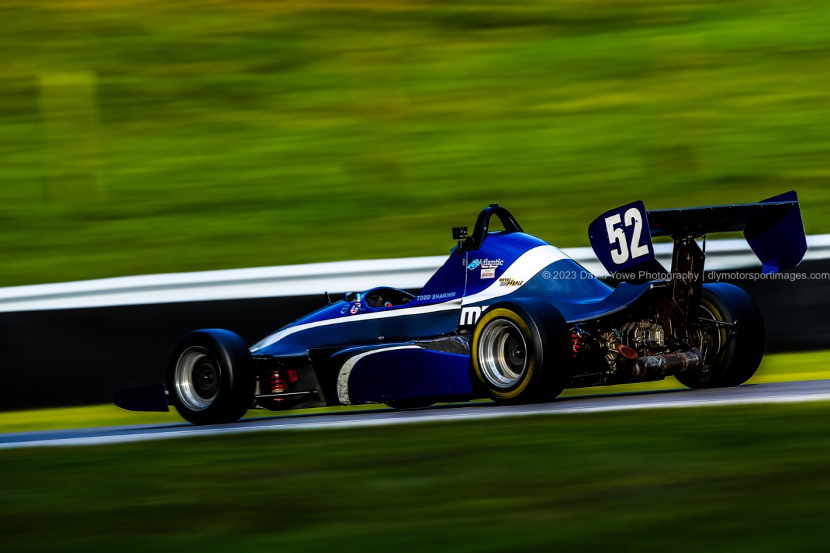 After several laps, walked to my left for side panning shots of the cars. Really liked the side profiles of these cars. A 1985 Shrike P15 (top) and a 1990 Lola T90/90 (bottom).