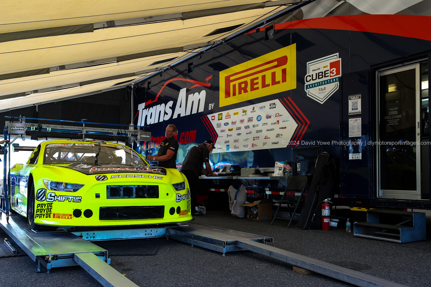 Walked back along the A Paddock, past the Timing and Scoring Tower, to the Technical Inspection station for the Trans-AM cars, and watched the cars being inspected.