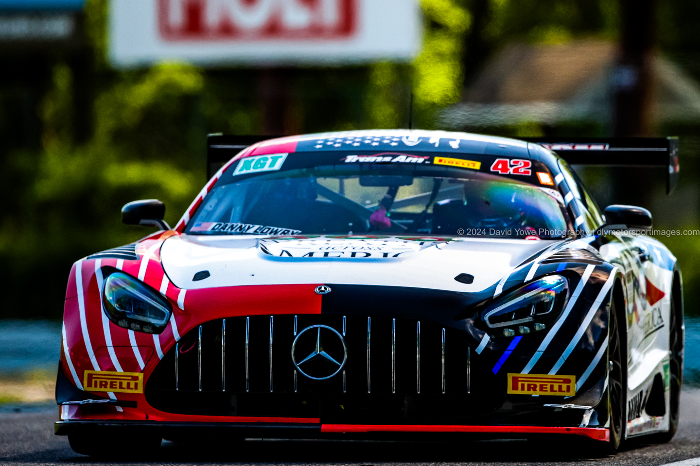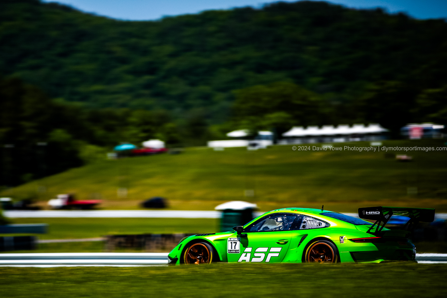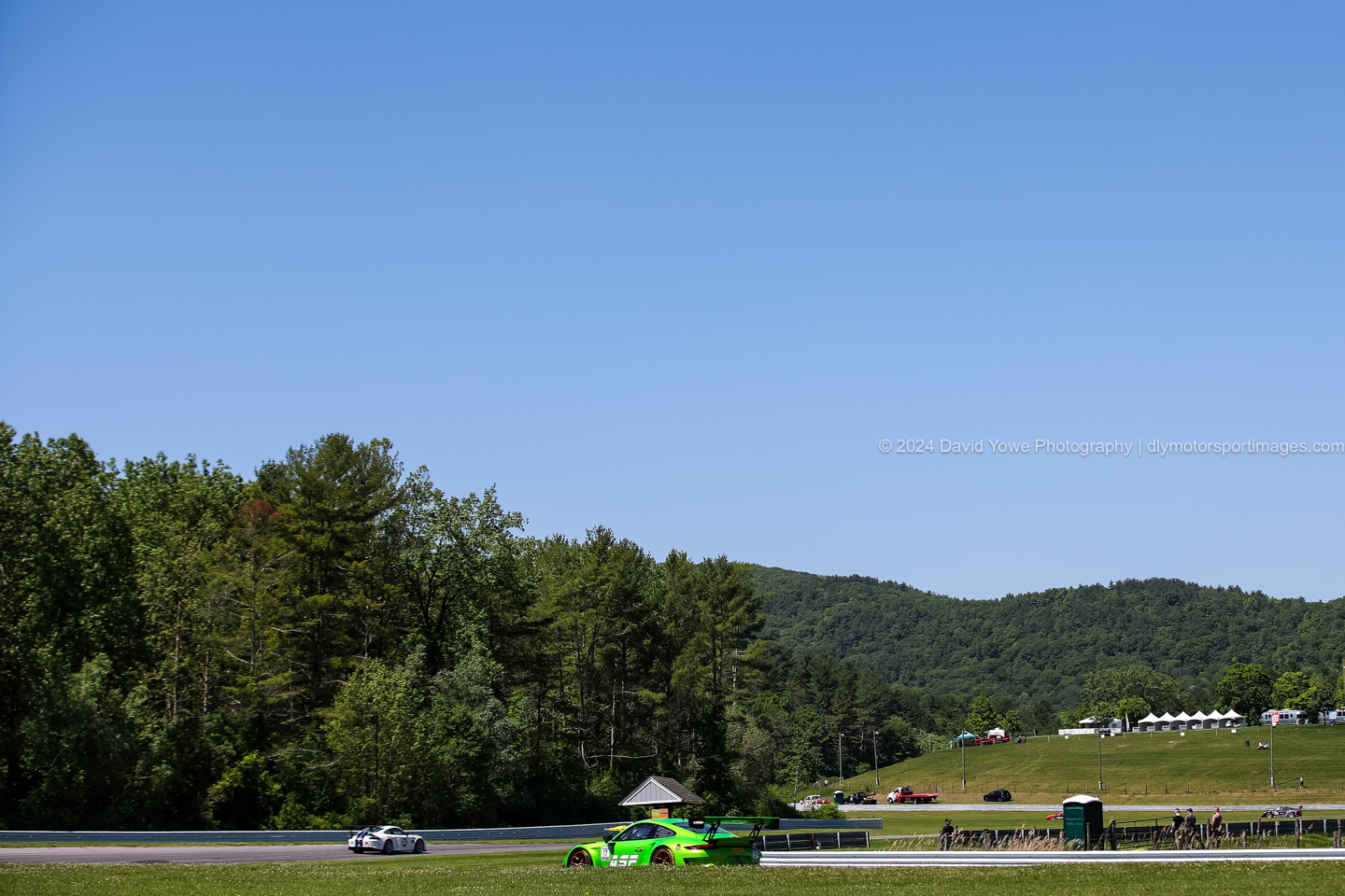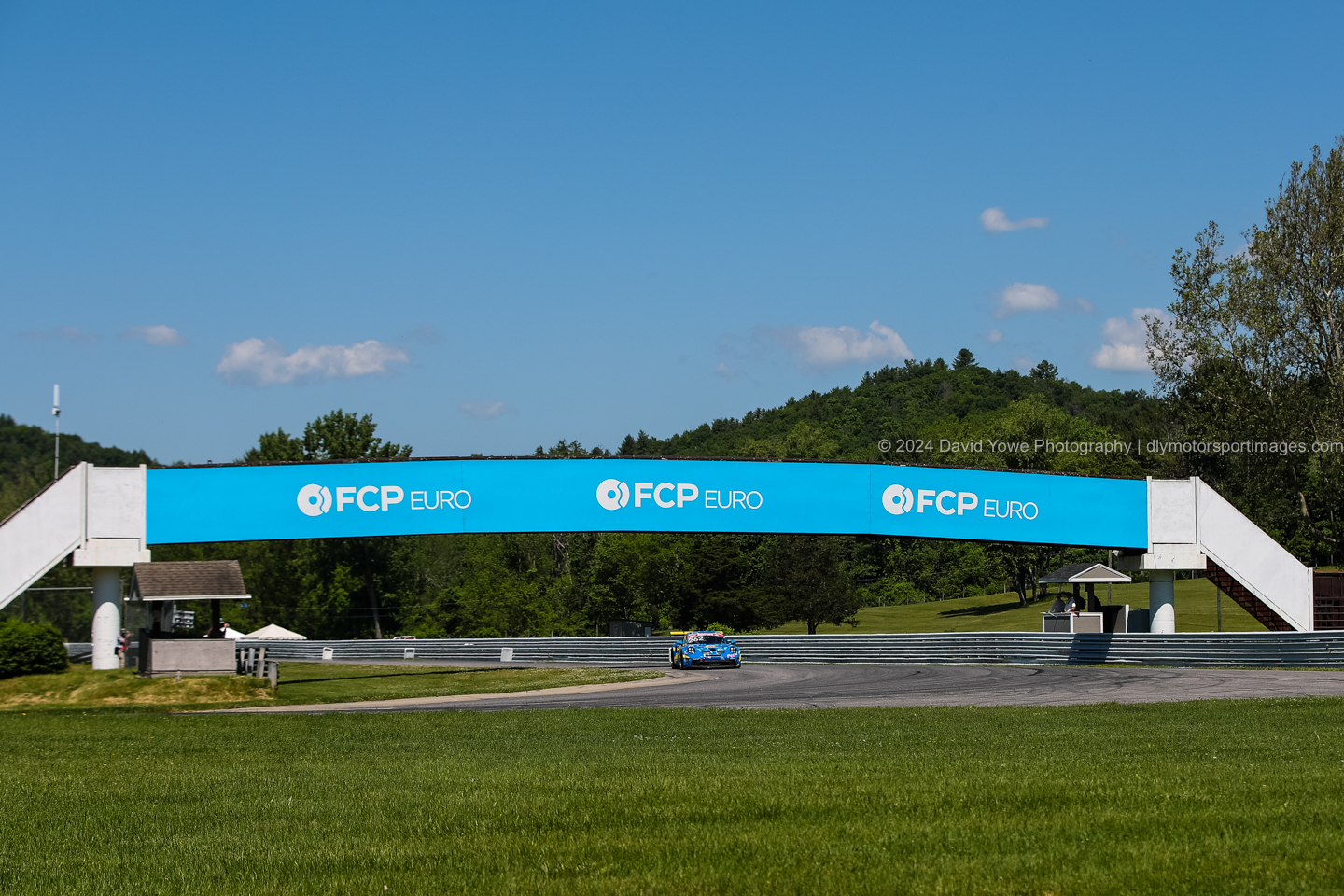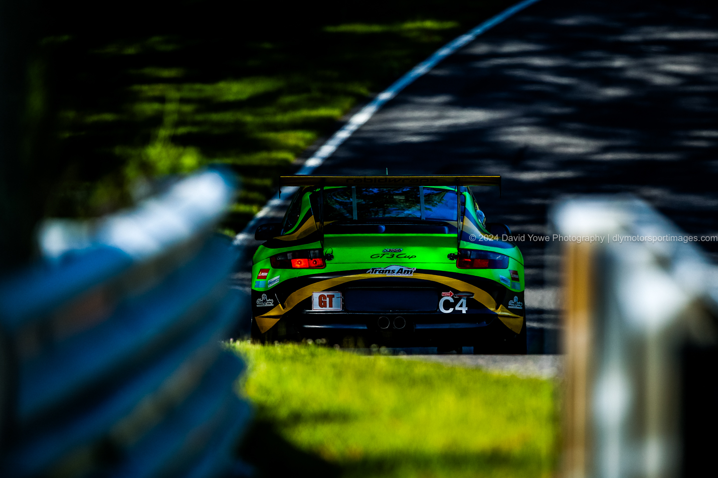 For the mid-afternoon IGT qualifying session, went over to the outside of the Right Hander. From this vantage point you can get photos of the cars as they pass the Lime Rock Park tower in the background.