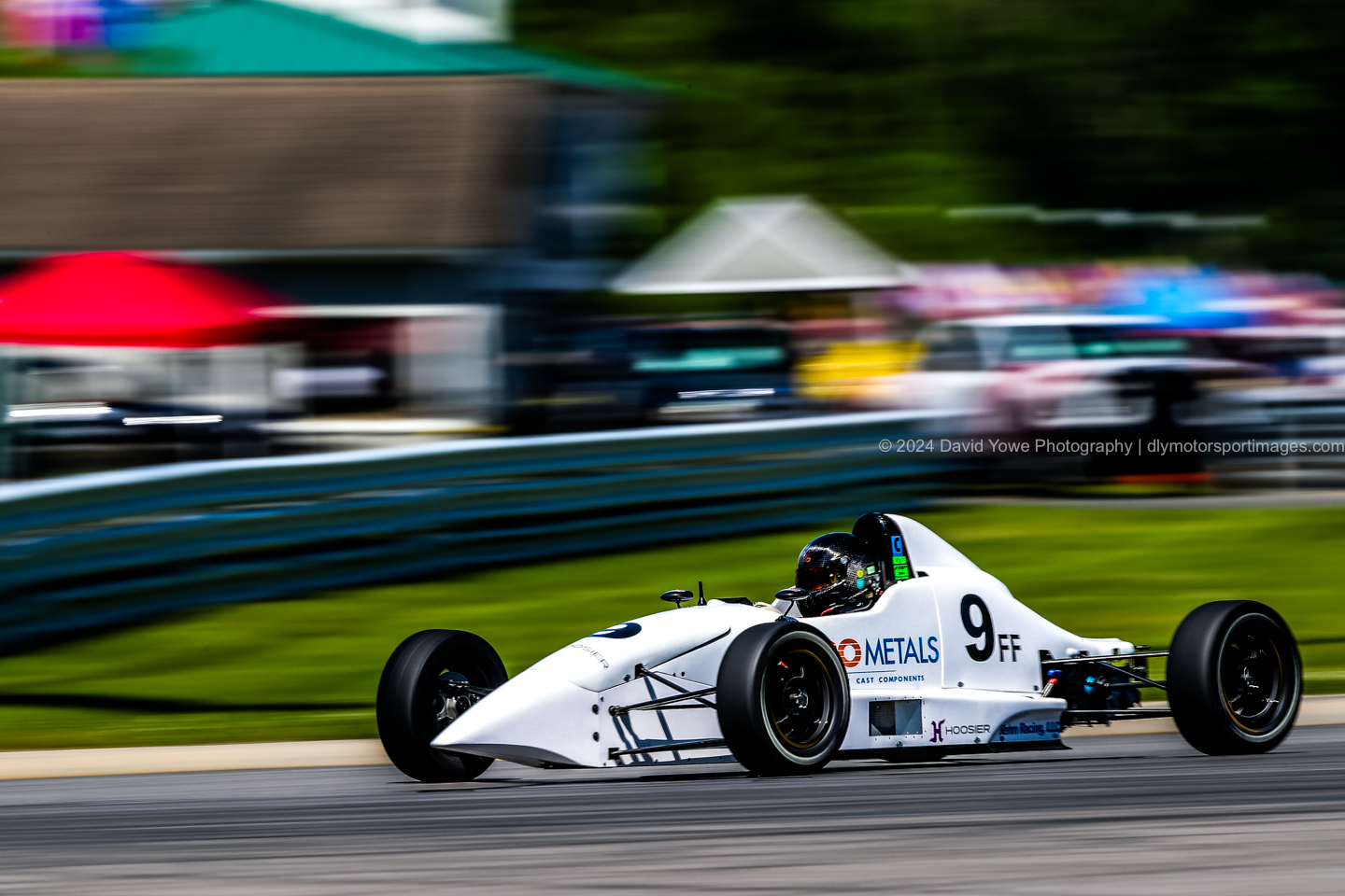 After this session finished, went to the outside of Big Bend for photos of the cars as they sped down Sam Posey Straight, then into Big Bend. Arrived here in time for the mid-morning test session for the Sportscar Vintage Racing Association (SVRA) Groups 2,9 and Formula Race Promotions (FRP) cars. The SVRA is one of the largest and oldest vintage car racing organizations in the USA and holds events at many legendary race tracks throughout the country; whilst the FRP is an East Coast hosting body for formula car racing including the F1600, F2000 and Atlantic series. A 2004 Mazda Pro Formula Elan (above).