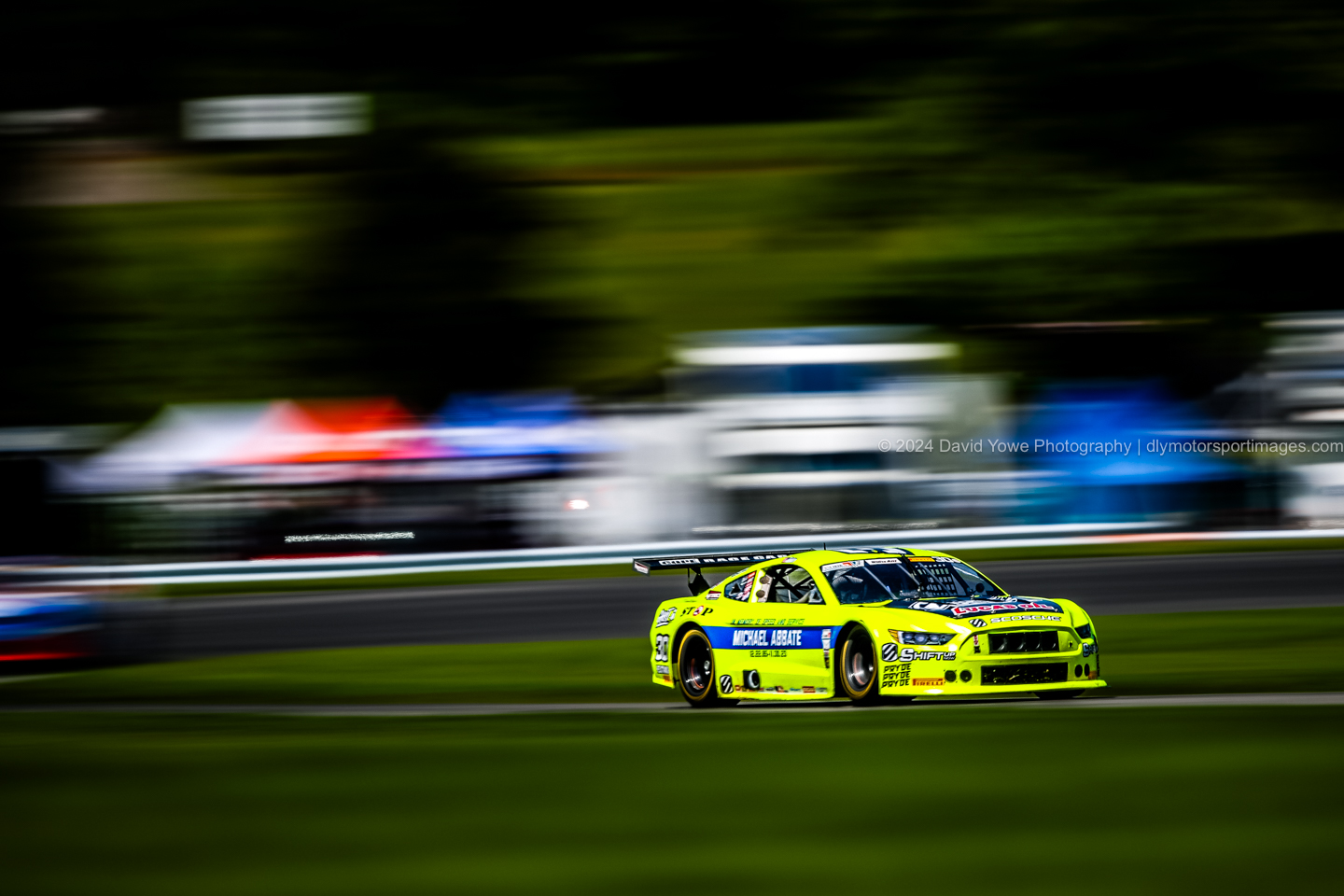 Stayed at this location for the late afternoon TA2 qualifying session. The #3 CMI / Spot-On-Serv Ford Mustang.