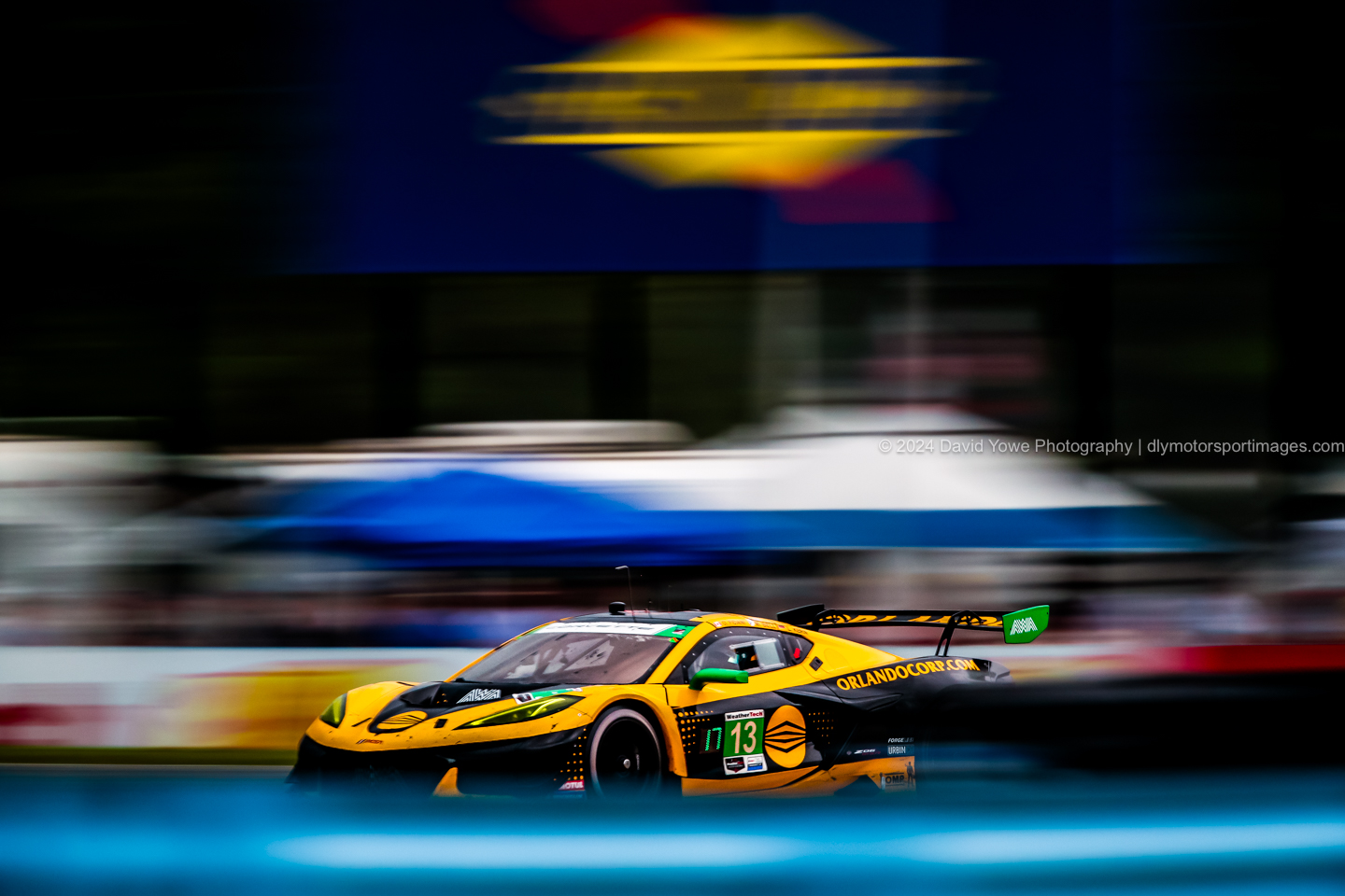 For the re-start of the race, walked over to the inside of the Chute part of The Boot. During the first couple of warm-up laps, you could see the water spray behind the cars, but this subsided after the cars did a few laps. The #34 Conquest Racing Ferrari 296 GT3 (top), #5 Proton Competition Mustang Sampling Porsche 963 (middle) and the the #7 Porsche Penske Motorsport Porsche 963 (bottom) who would go on to win the GTP class and take the outright win. After the race finished at 5.10 pm, walked back to the car. Had a great time today with all the different photography locations, weather conditions, and of course the on track sports car racing action. Thanks for spending your time reading this photo blog.