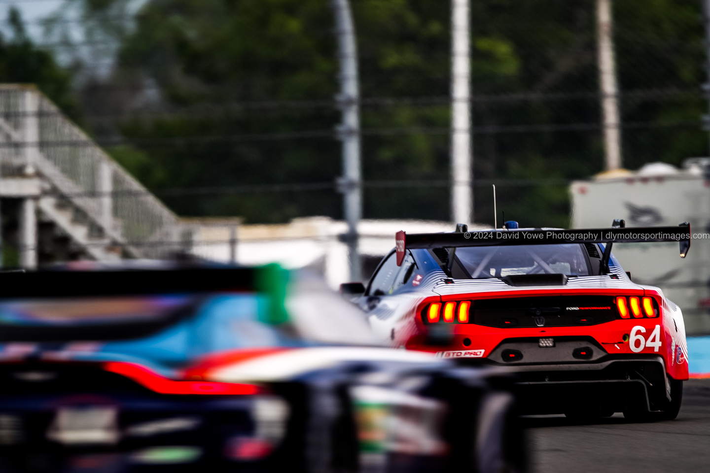 Went back to the car, then drove to the inside of the Inner Loop. First took photos of the cars as they entered this complex. The #63 Lamborghini Iron Lynx Lamborghini SC63 with its signature LED brake lights (top) and the #64 Ford Multimatic Motorsports Ford Mustang GT3 (bottom).