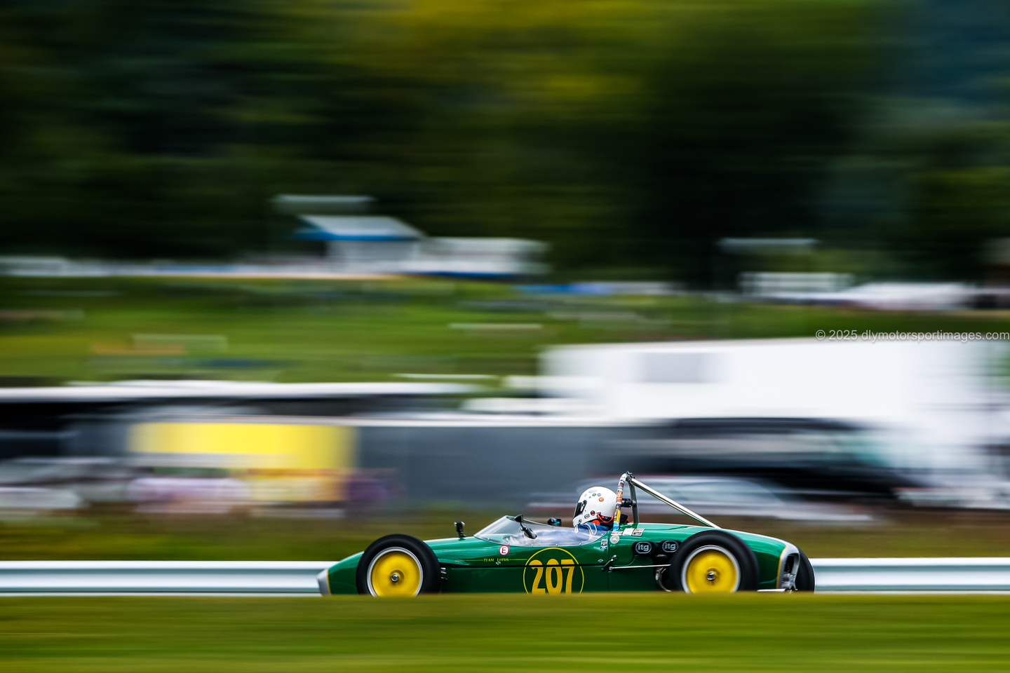 Stayed in this location for the next session, which was the first practice session for the Group 2, Jim Haynes Memorial for Formula Juniors. A 1960 Elva 200 FJ.