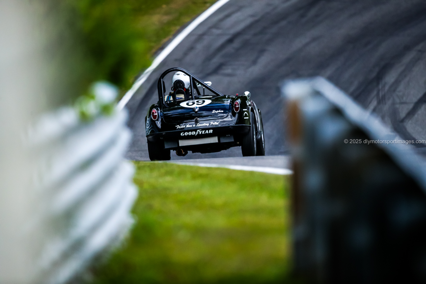 Then turned my attention for shots of the cars as they left the Down Hill, into Sam Posey Straight. A 1956 Porsche 550A (top) and 1957 Tojeiro Climax (bottom).